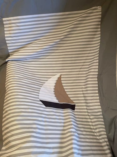 1x Maritime Patchwork Decke, Tagesdecke, Kinderdecke, Bettüberwurf 130cm x 200cm grau/weiß