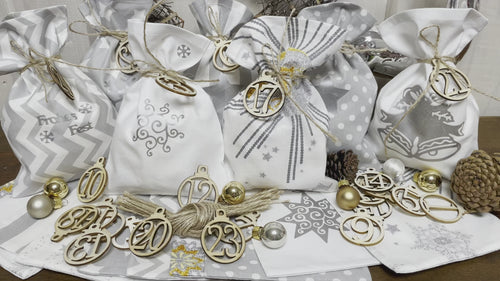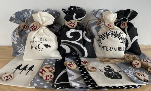 Adventskalender,Landhausstil Adventskalender zum Befüllen, 24 Säckchen zum Advent, schwarz/grau/creme