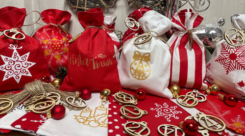 Adventskalender,Landhausstil Adventskalender zum befüllen, 24 Säckchen zum Advent, Adventskalender Zahlen aus Holz, rot/weiß