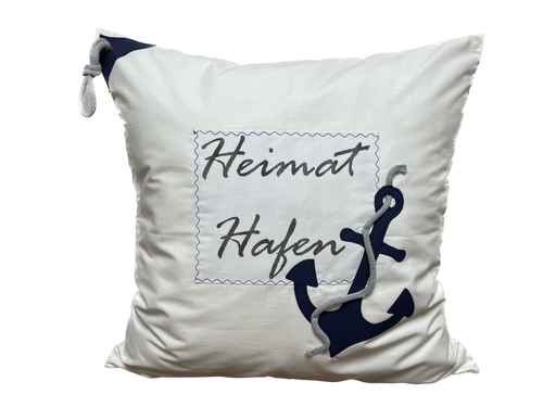 Maritime Kissenhülle, Kissenbezug, Landhausstil Dekokissen * Heimathafen * blau/weiß/beige