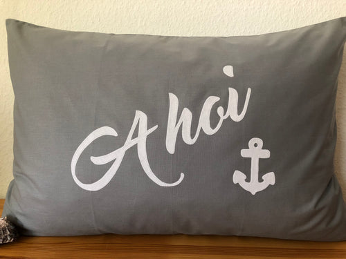 Maritime Kissenhülle, Kissenbezug, Landhausstil Kissen * Ahoi * grau/weiß 40x60cm.