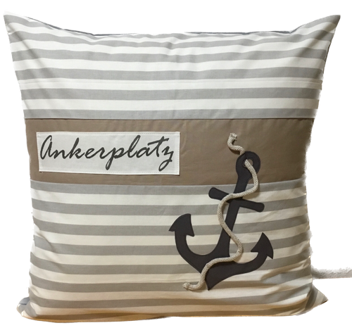 Maritime Kissenhülle, Kissenbezug, Landhausstil Kissen * Ankerplatz * grau/weiß