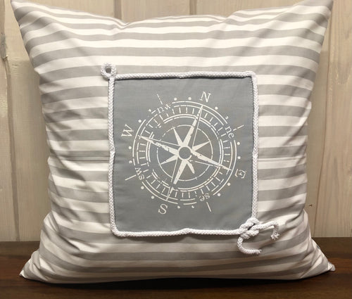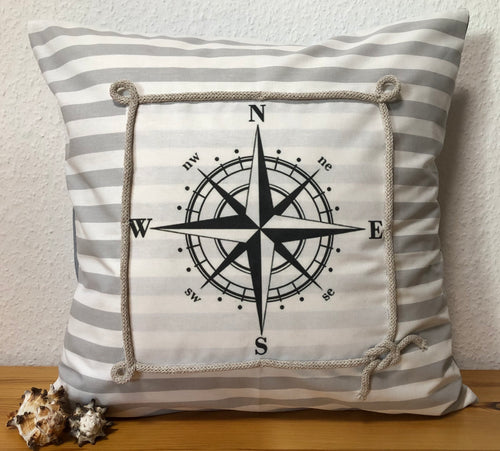 Maritime Kissenhülle, Kissenbezug, Landhausstil Kissen * Kompass * grau/weiß![]()  - Normaler Preis