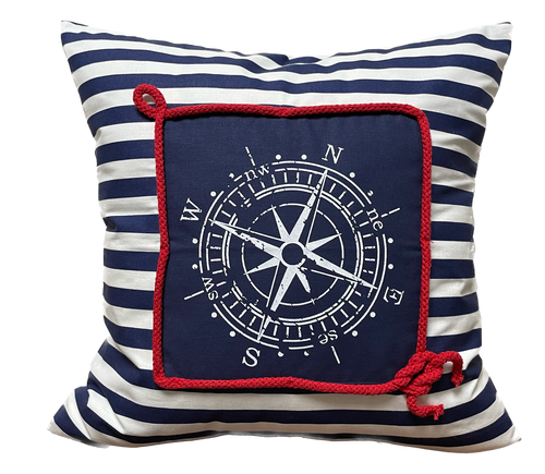 Maritime Kissenhülle, Kissenbezug, Landhausstil Kissen * Kompass * blau/weiß![]()  - Normaler Preis