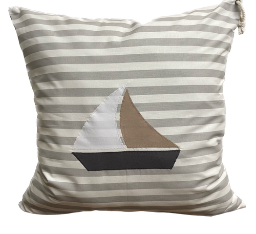 Maritime Kissenhülle, Kissenbezug, Landhausstil Kissen * Segelboot * grau/weiß/beige![]()  - Normaler Preis