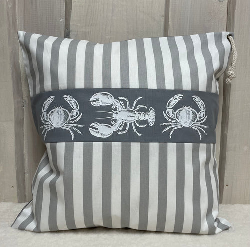 Maritime Kissenhülle, Kissenbezug, Landhausstil Kissen, Dekokissen Krebse grau/weiß
