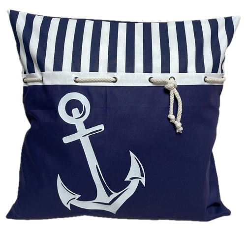 Maritime Kissenhülle, Kissenbezug, Landhausstil Kissen, Dekokissen Anker blau/weiß