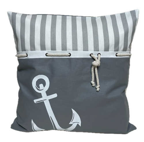 Maritime Kissenhülle, Kissenbezug, Landhausstil Kissen, Dekokissen Anker grau/weiß