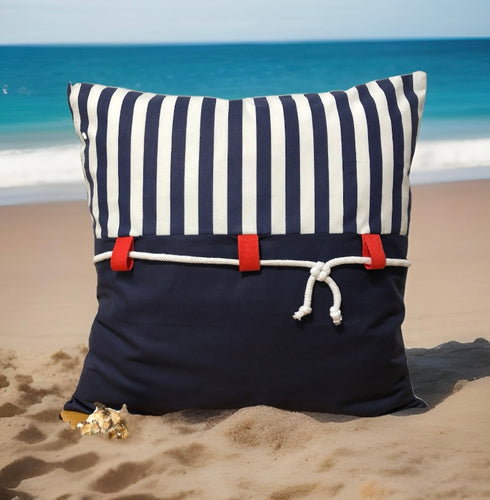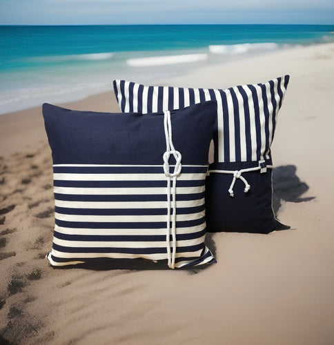 Maritime Kissenhülle, Landhausstil Dekokissen Seemannsknoten blau/weiß gestreift