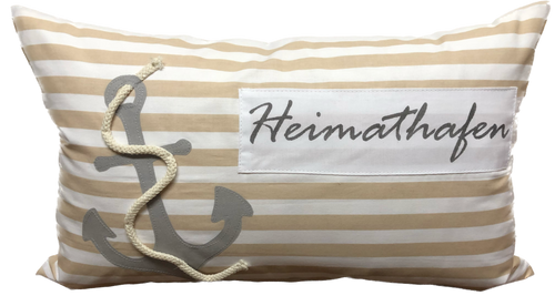 Maritime Kissenhülle, Landhausstil Kissenbezug * Heimathafen * Beige/weiß 30x50cm.