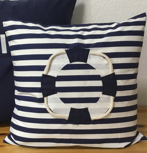 Maritime Kissenhülle, Kissenbezug,Landhausstil Kissen,Marine Kissen, Dekokissen, Rettungsring blau/weiß gestreift