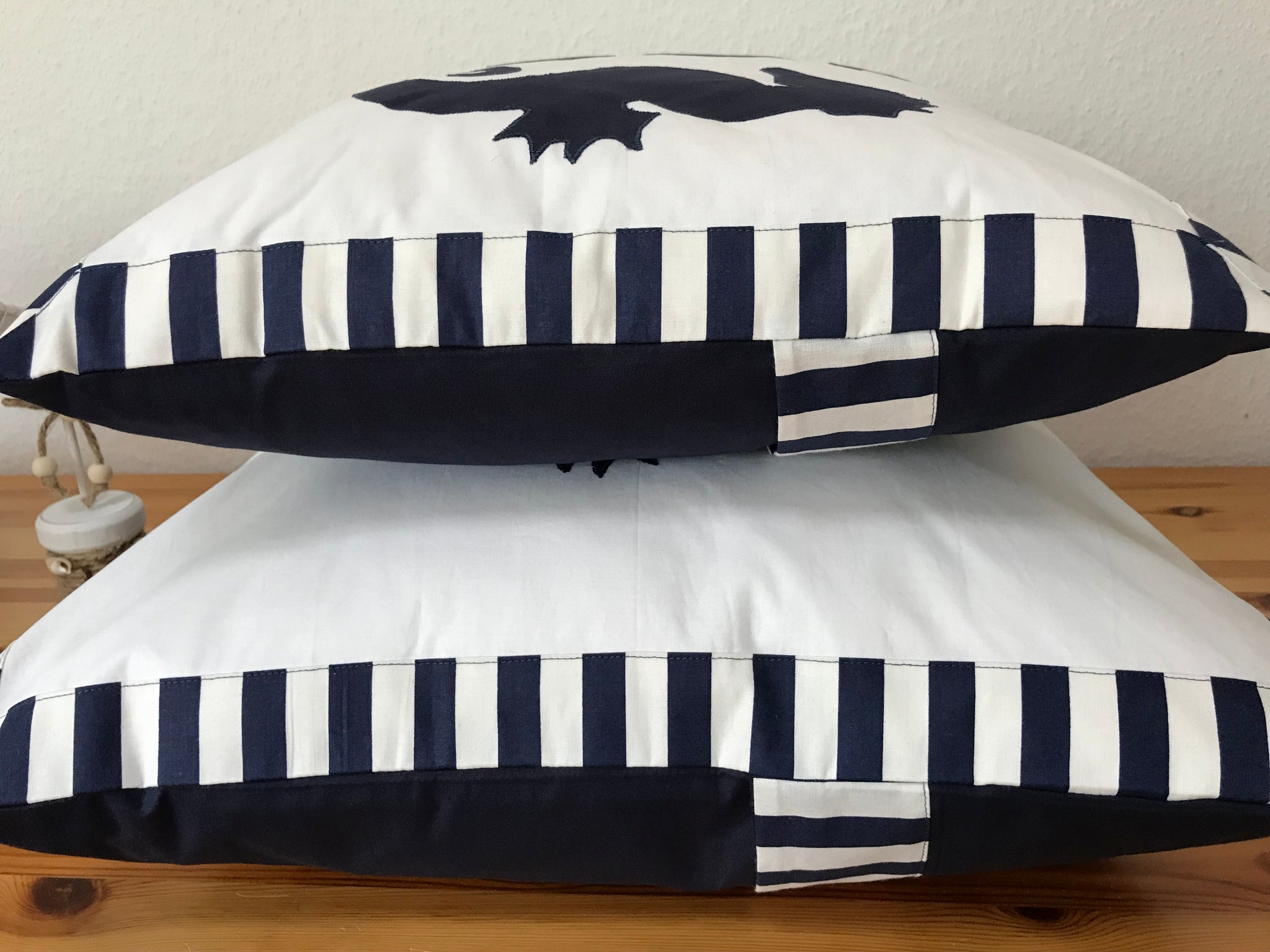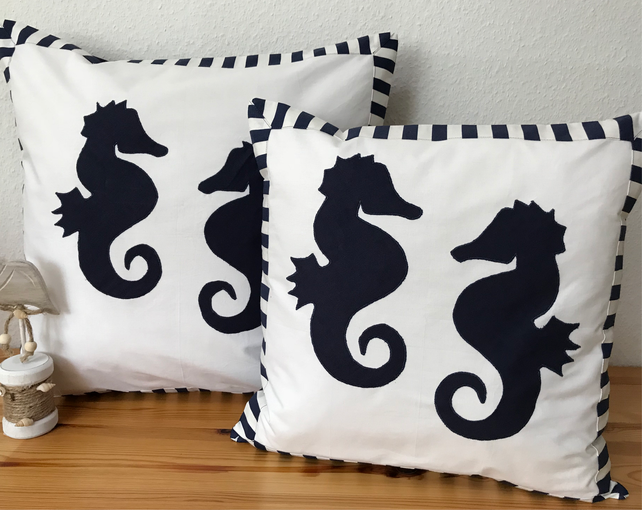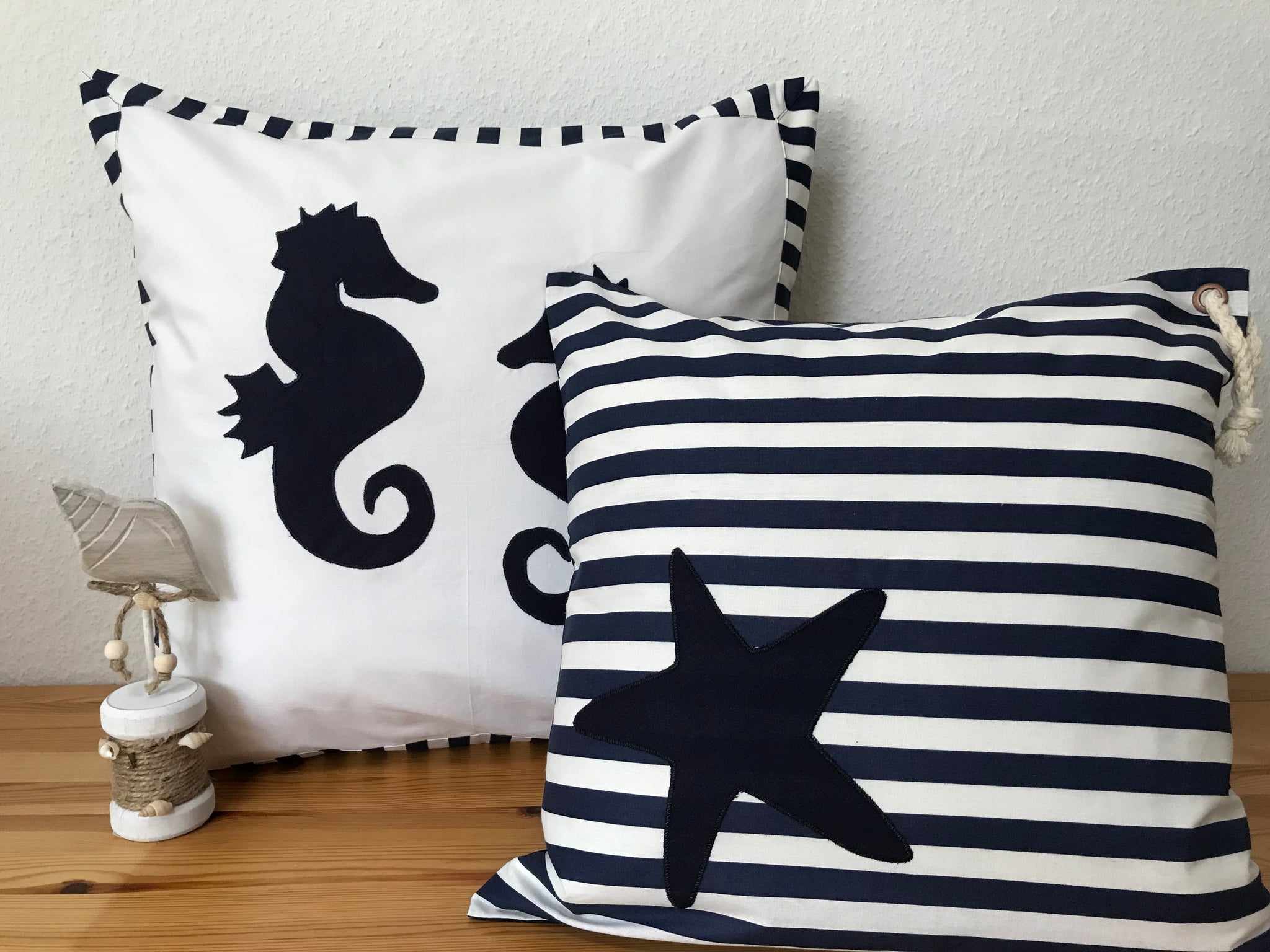 • Lade das Bild in den Galerie-Viewer, Maritime Kissenhülle, Kissenbezug, Landhausstil Kissen * Seepferdchen weiß/blau