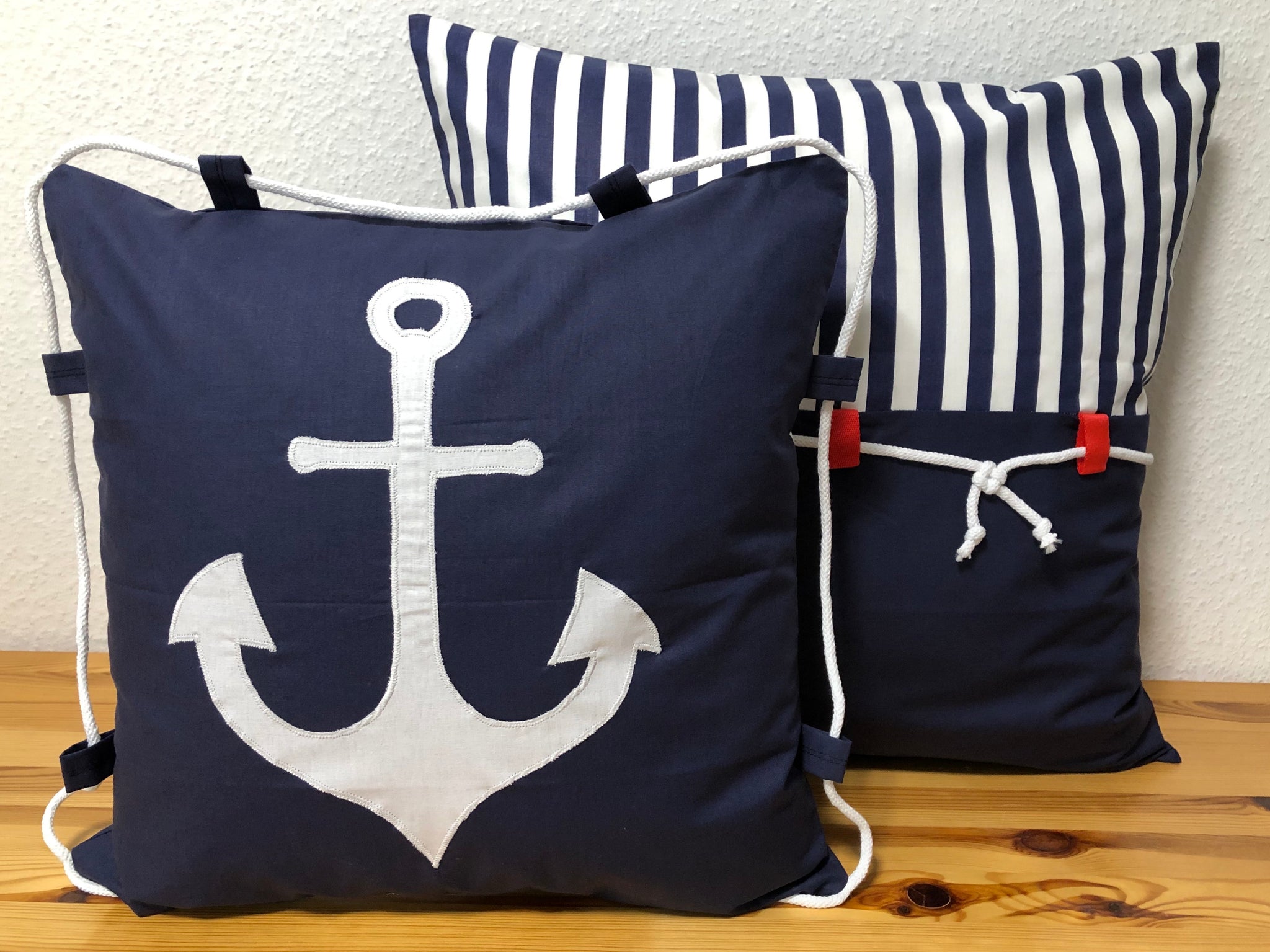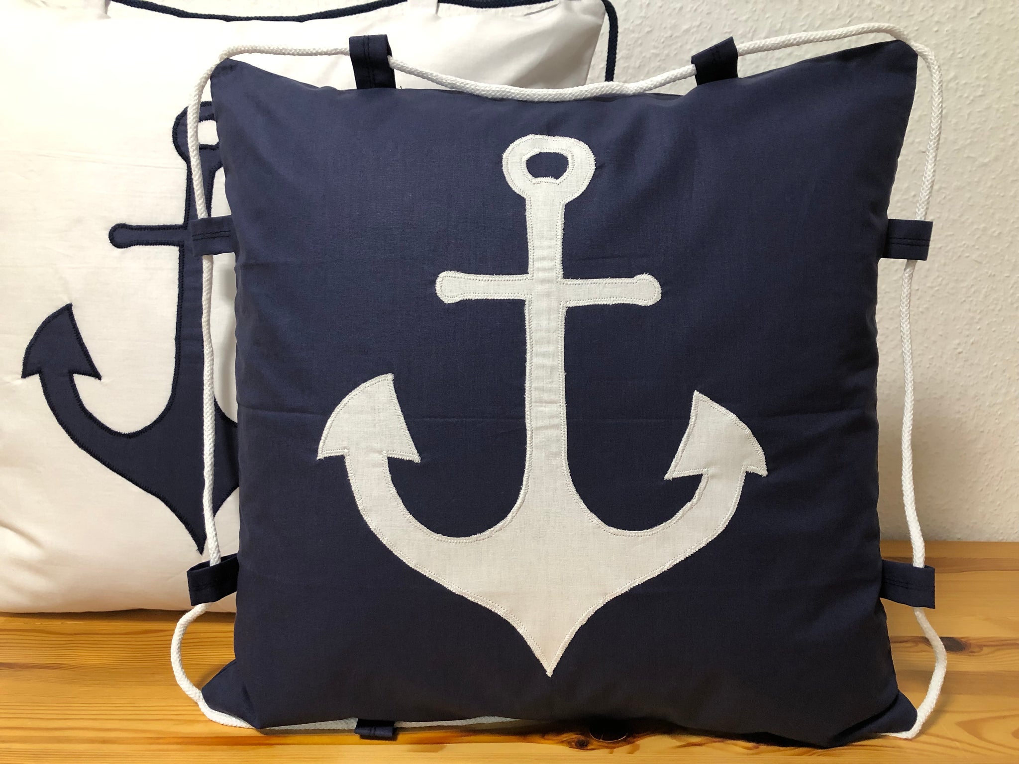 1x Maritime Kissenhülle, Kissenbezug, Landhausstil Kissen * Anker * blau/weiß