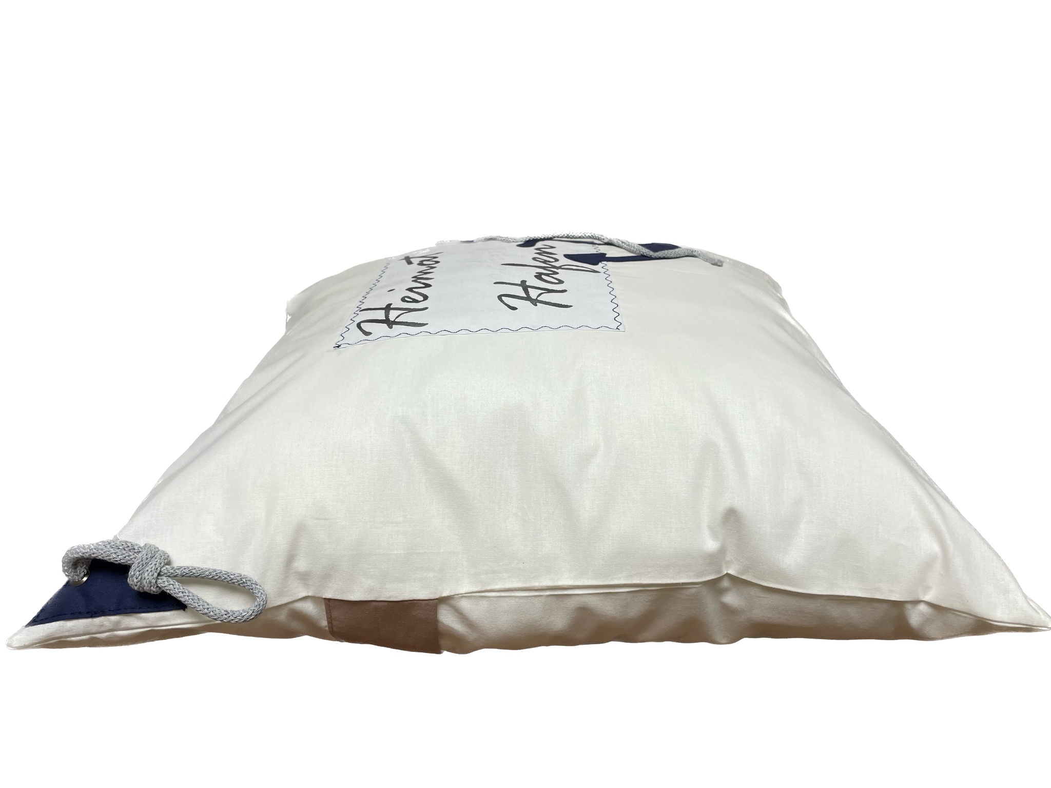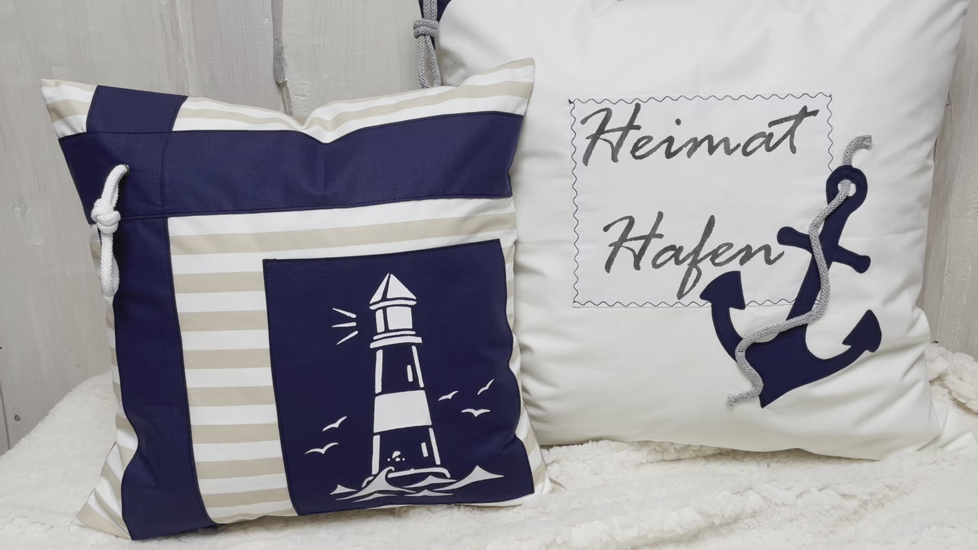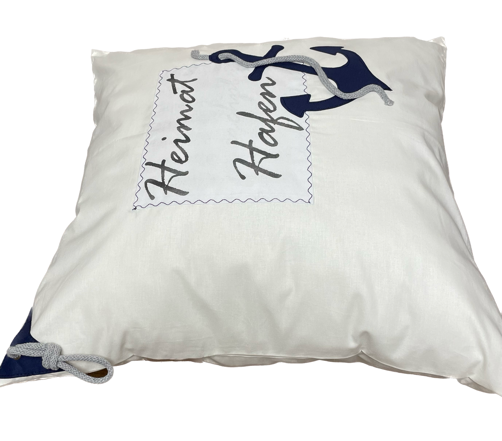 Maritime Kissenhülle, Kissenbezug, Landhausstil Dekokissen * Heimathafen * blau/weiß/beige