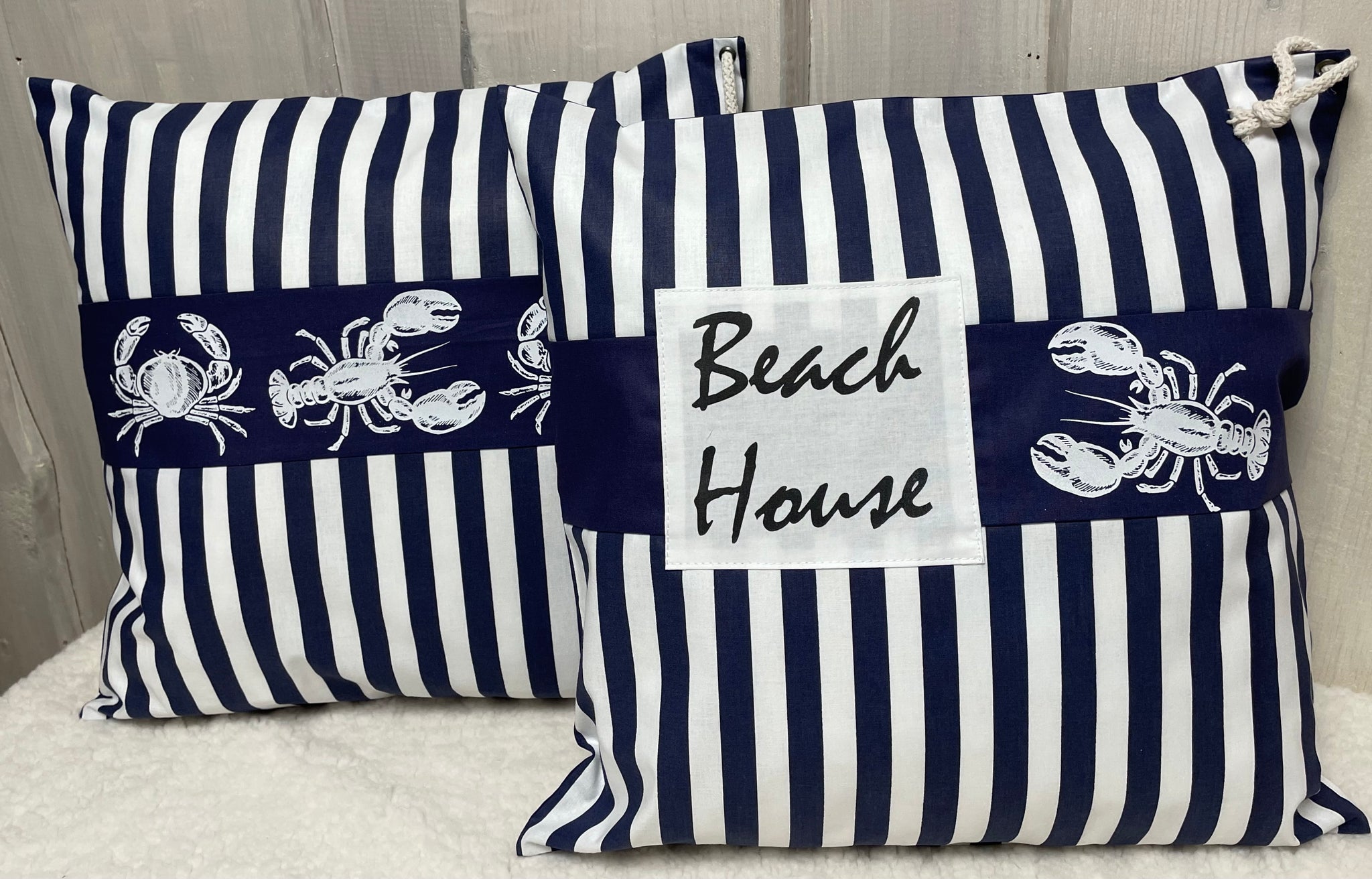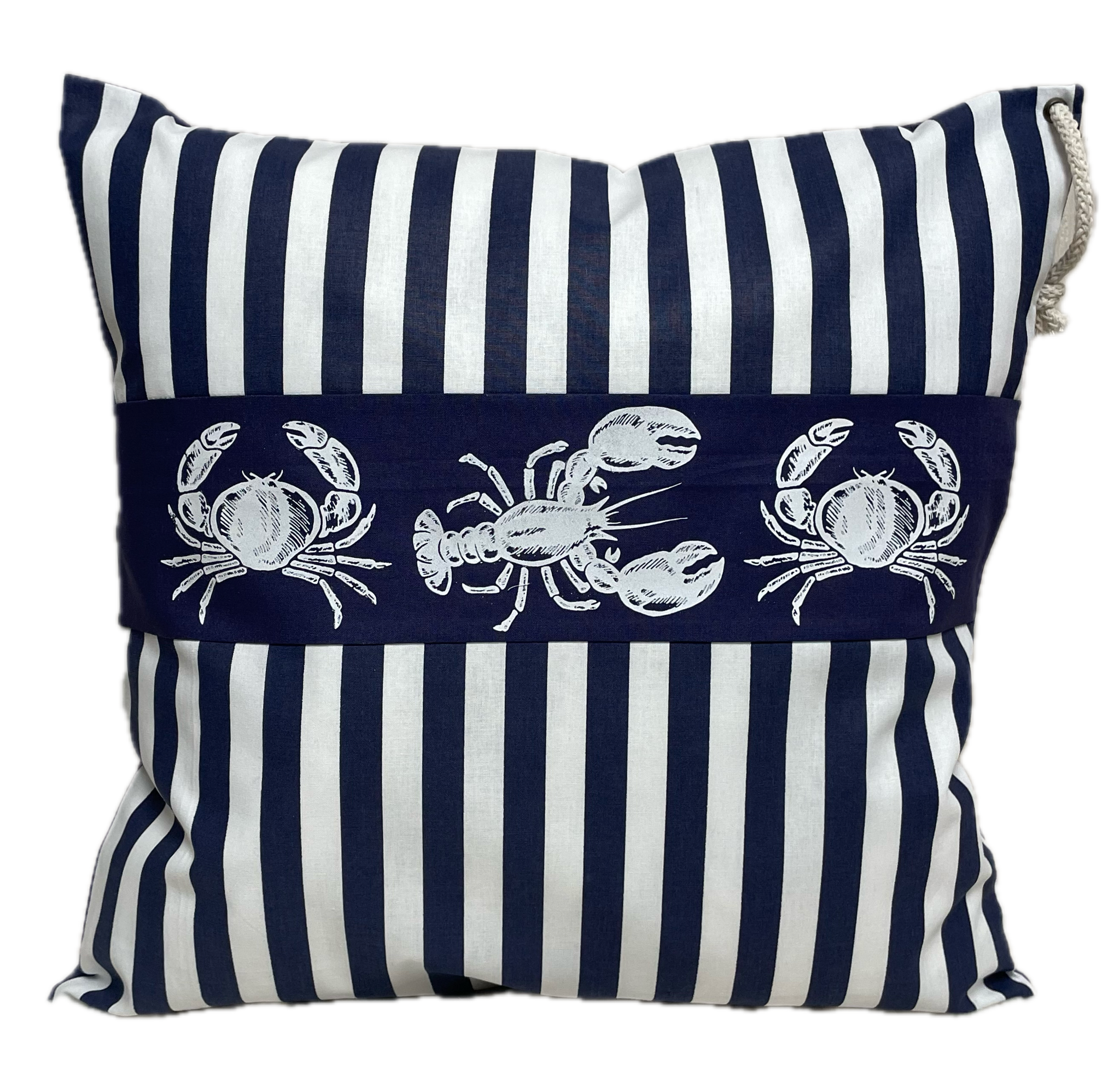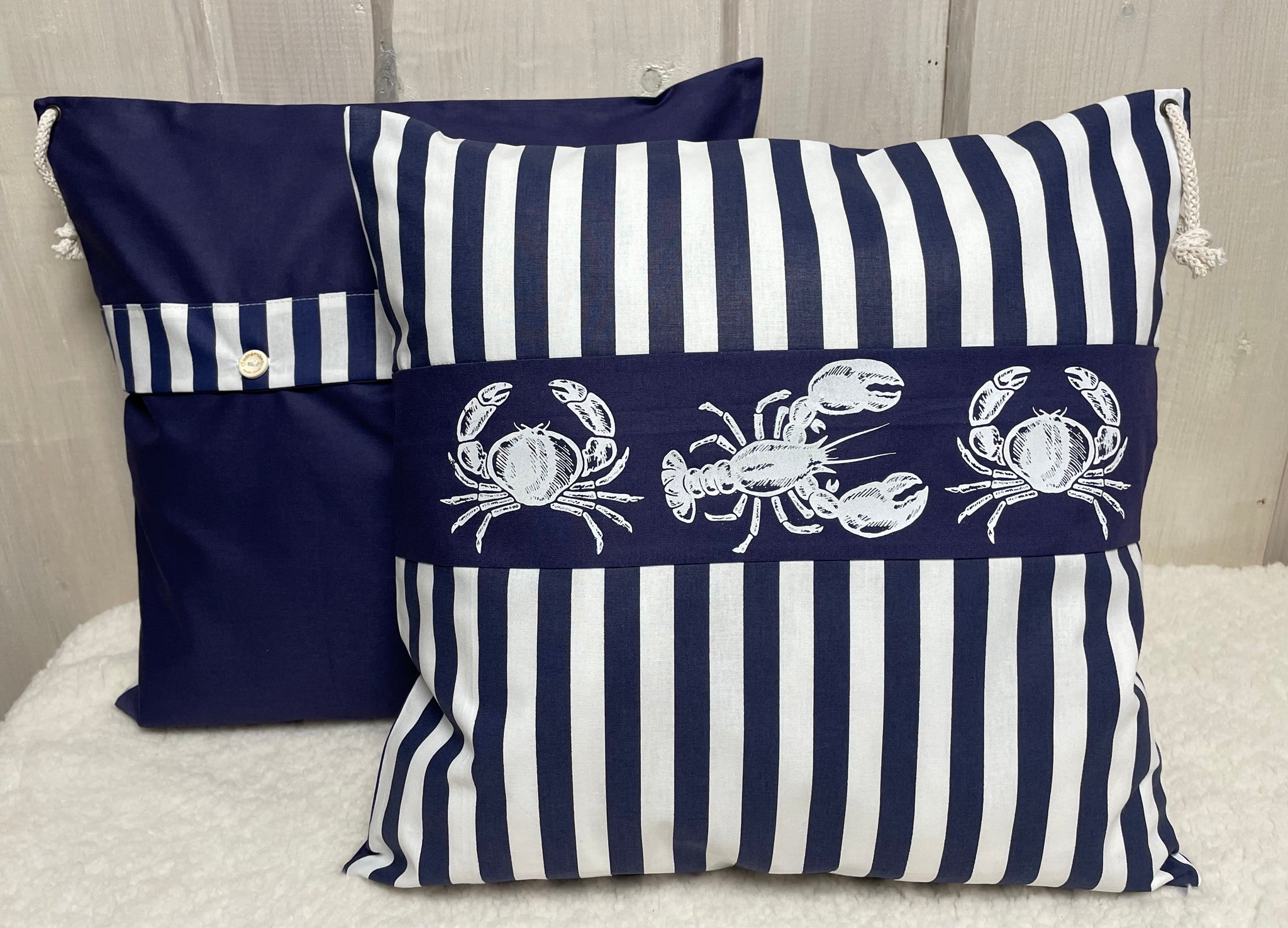 Maritime Kissenhülle, Kissenbezug, Landhausstil Kissen, Dekokissen * Krebse * blau/weiß