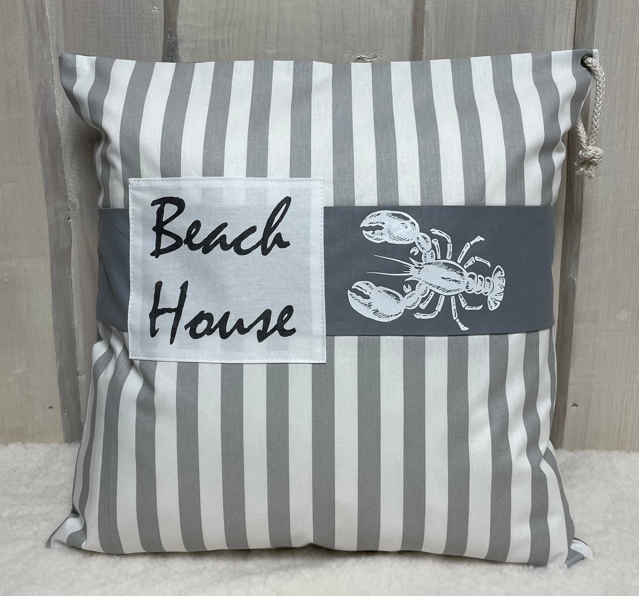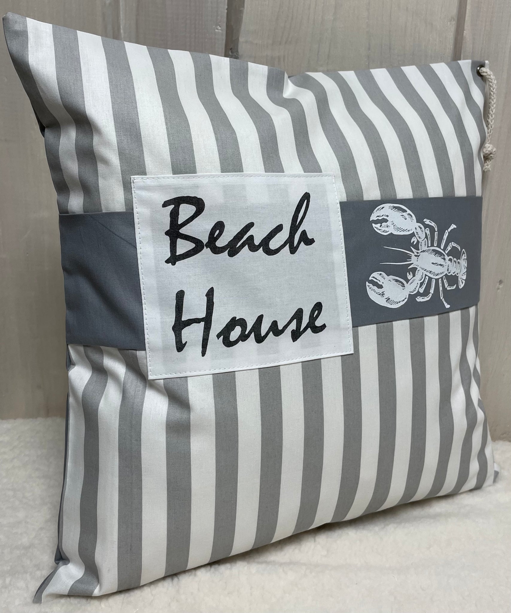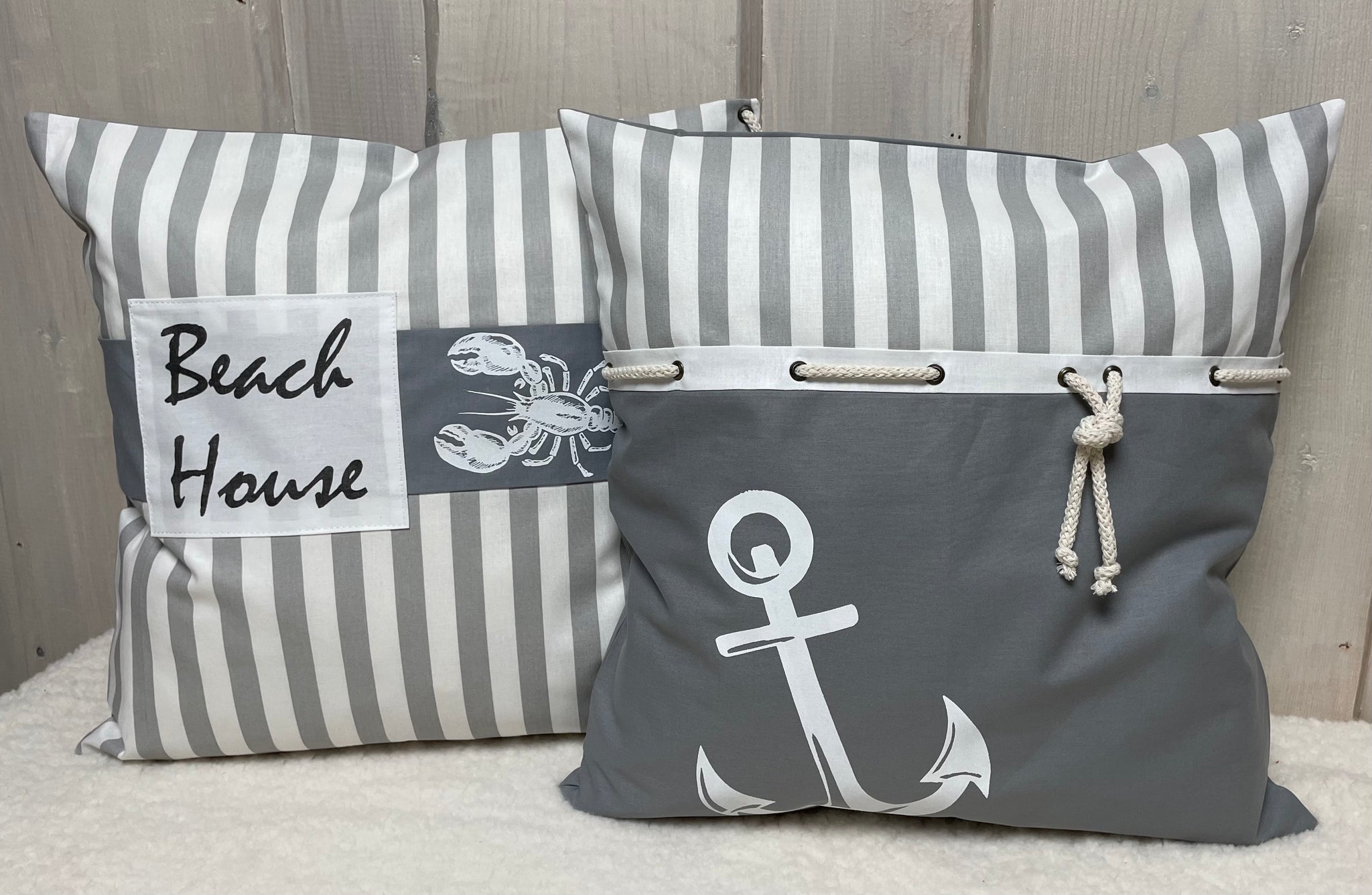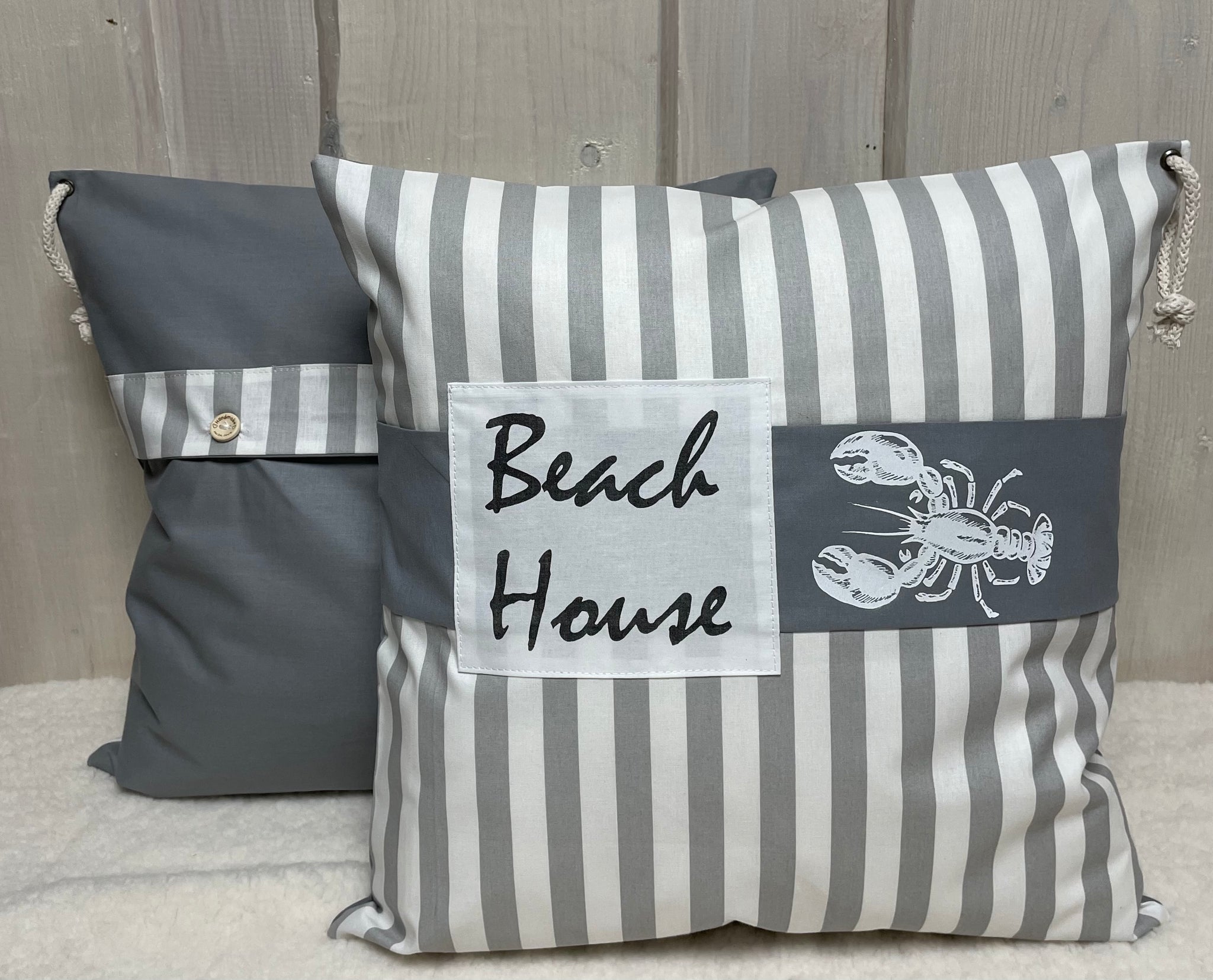 Maritime Kissenhülle, Kissenbezug, Landhausstil Kissen, Dekokissen Beach House grau/weiß