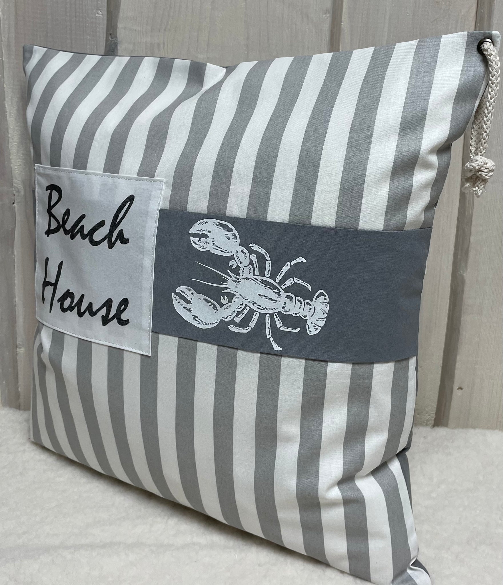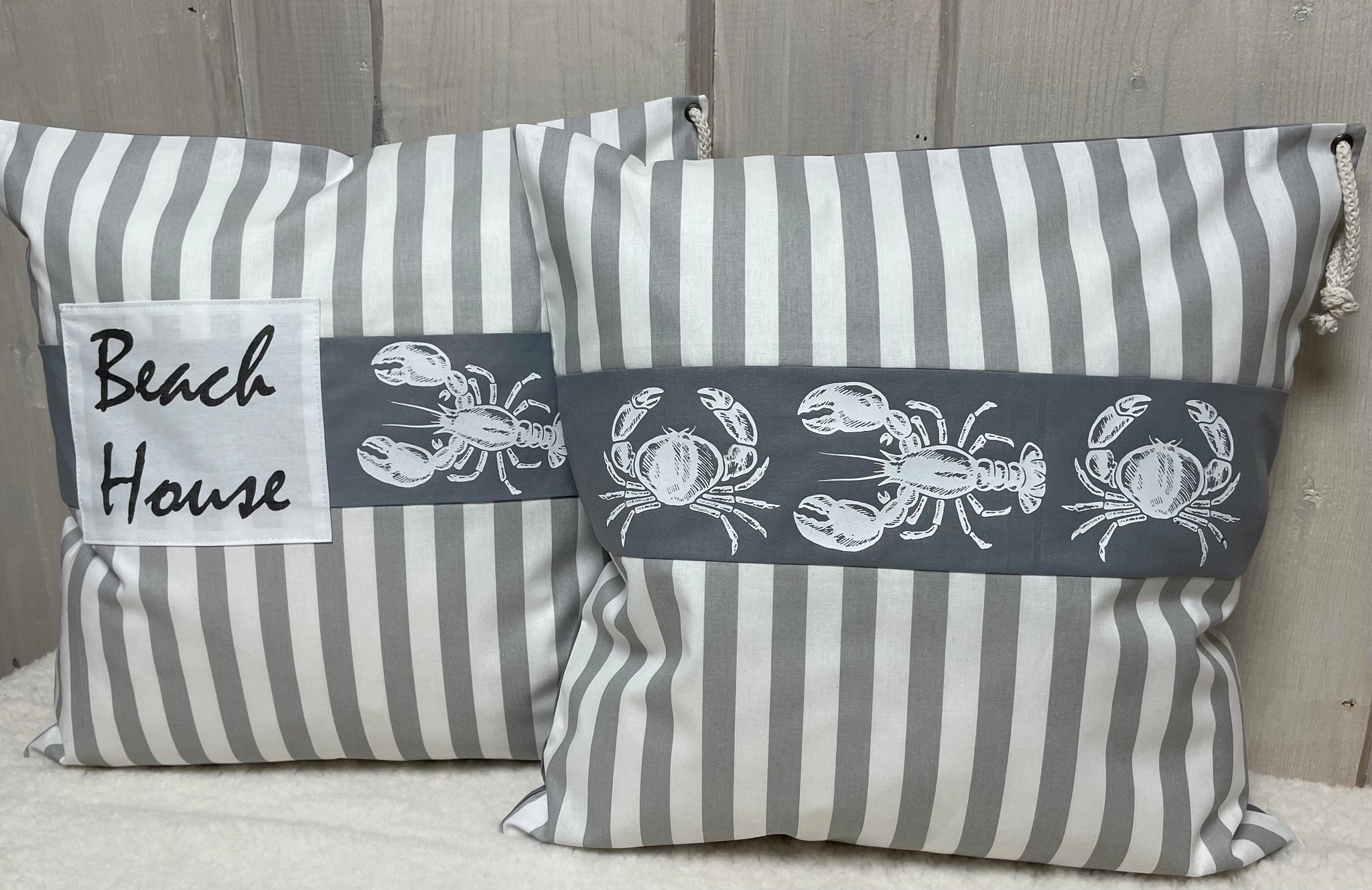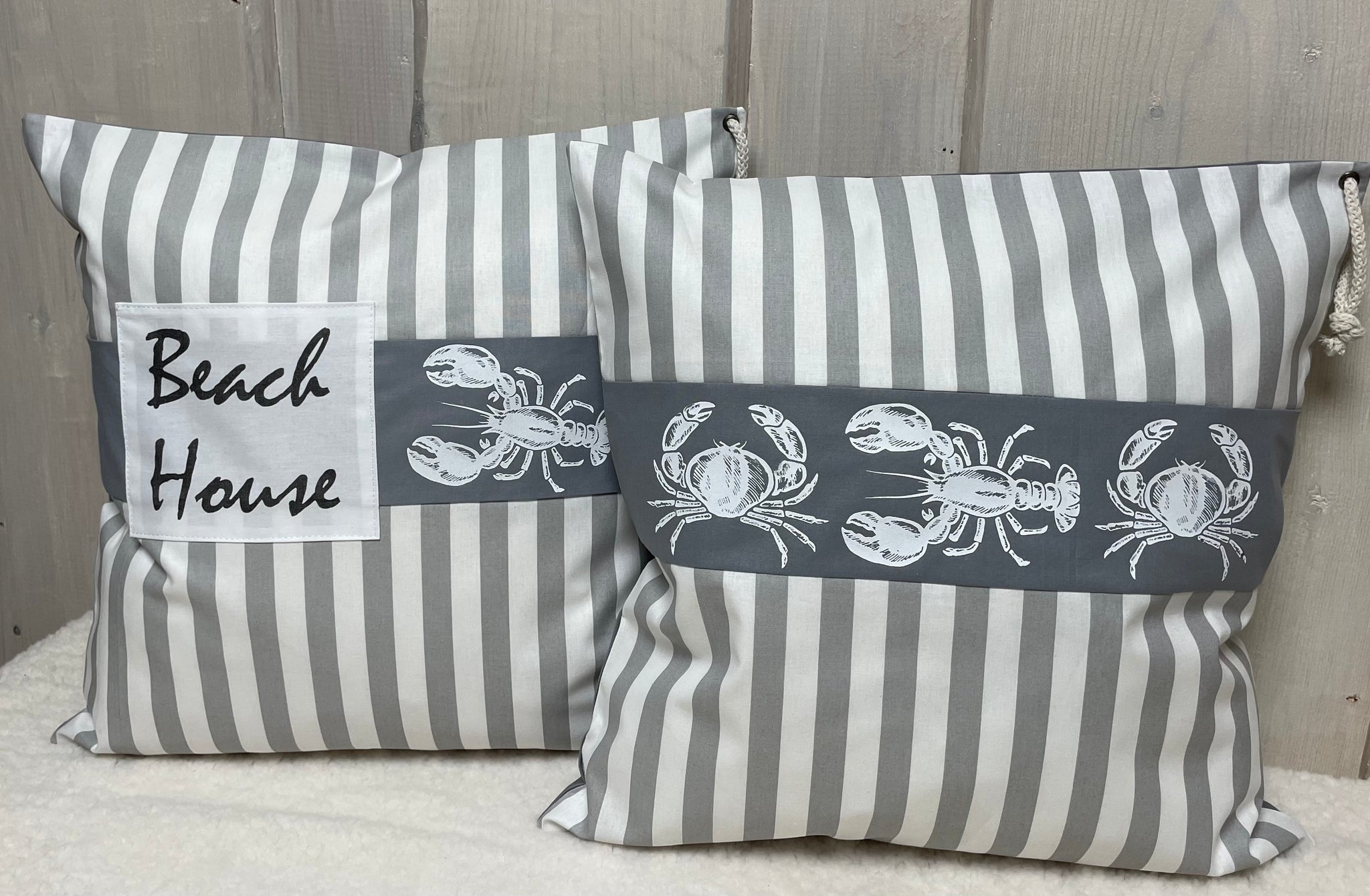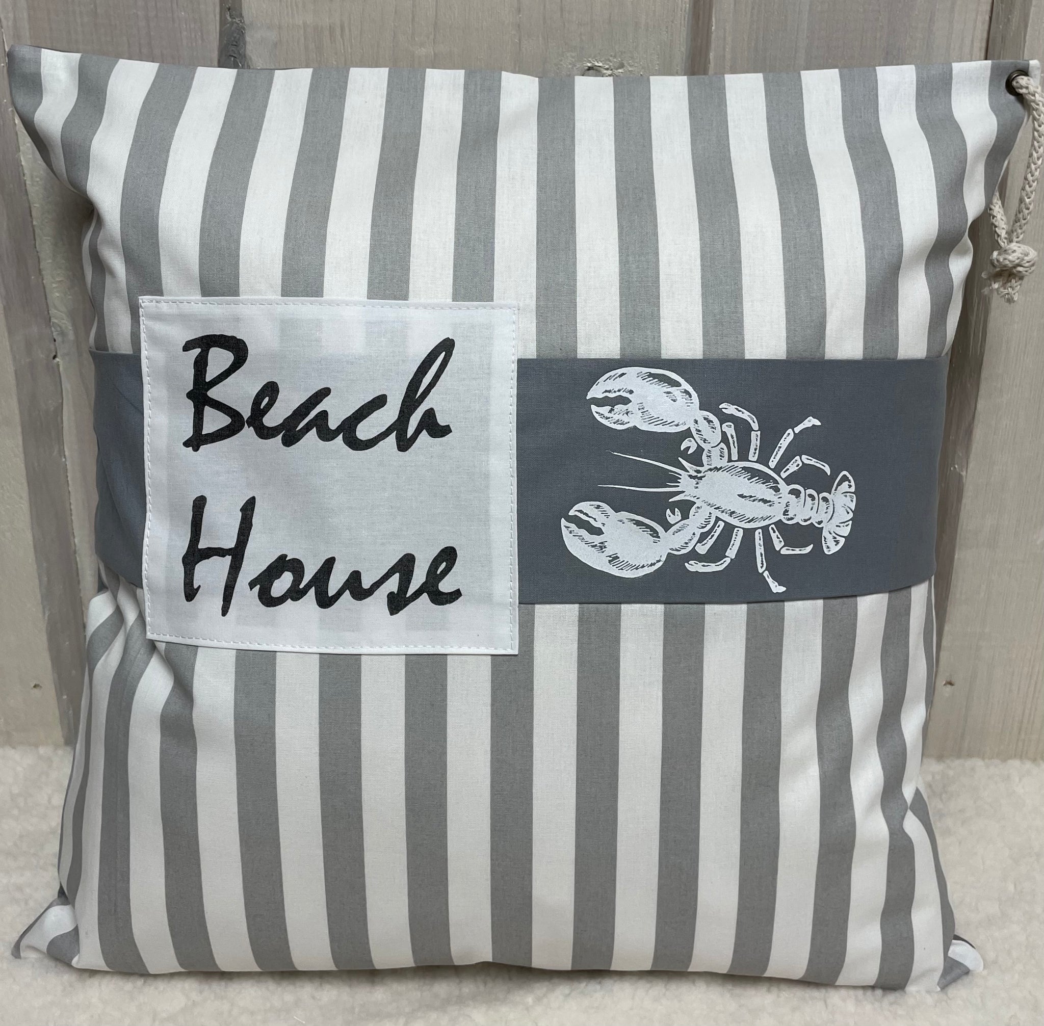 Maritime Kissenhülle, Kissenbezug, Landhausstil Kissen, Dekokissen Beach House grau/weiß