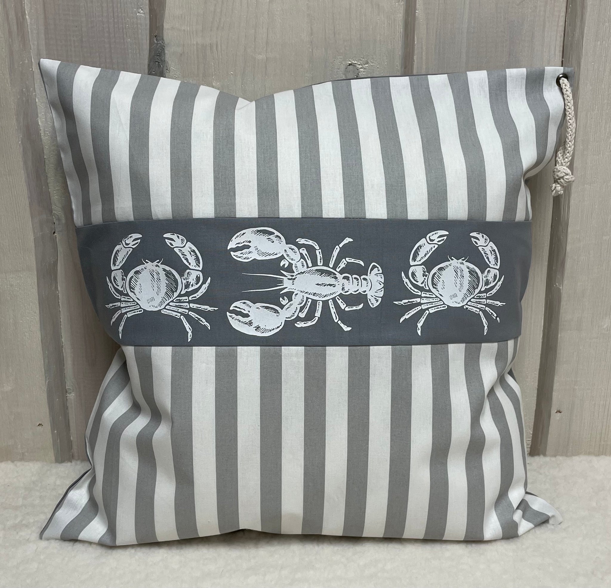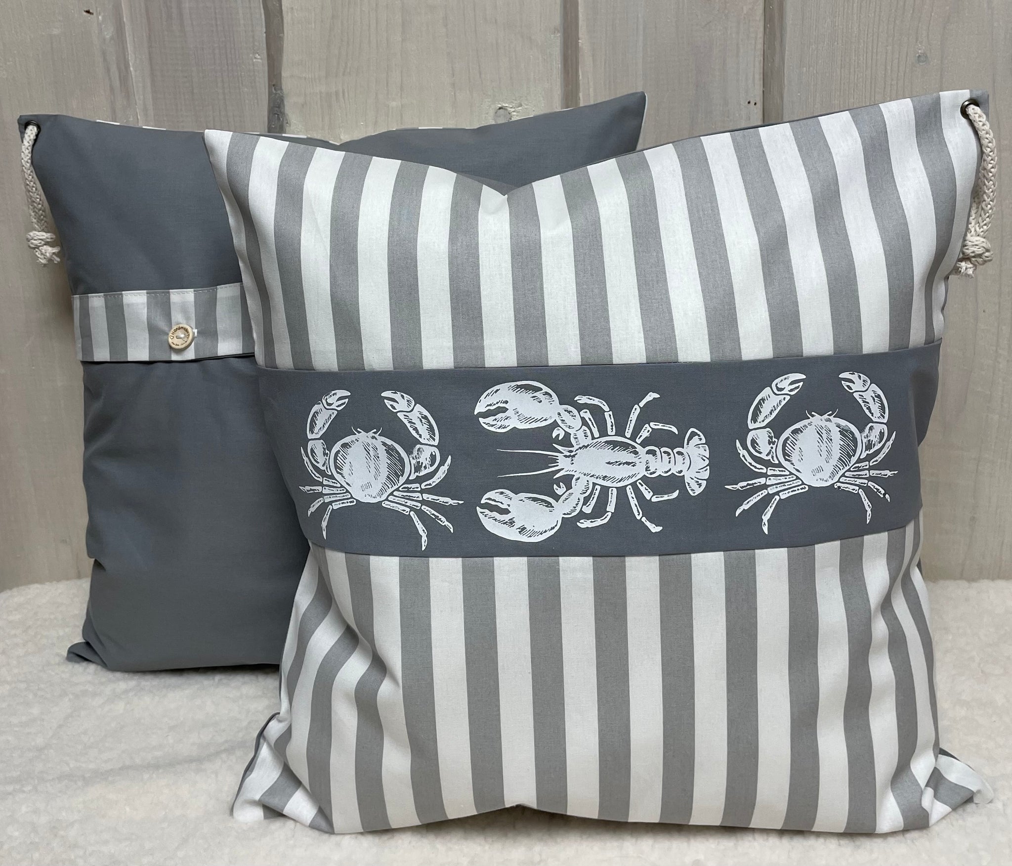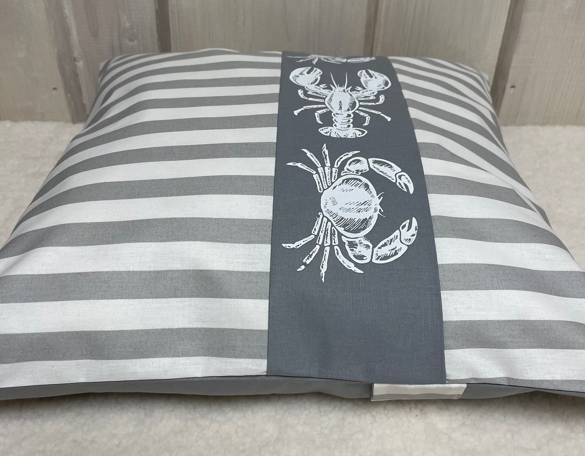 Maritime Kissenhülle, Kissenbezug, Landhausstil Kissen, Dekokissen Krebse grau/weiß