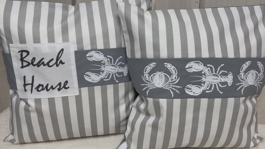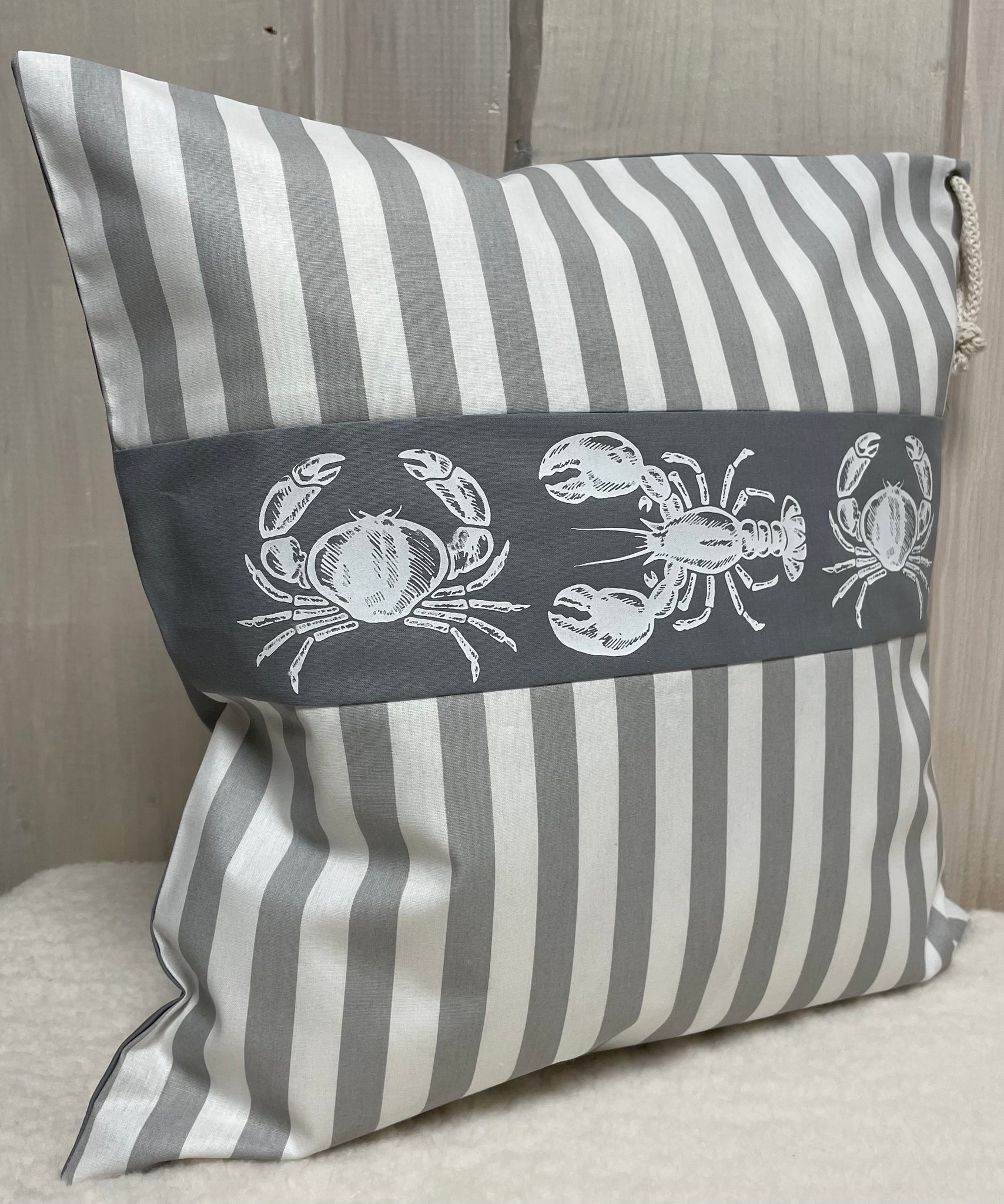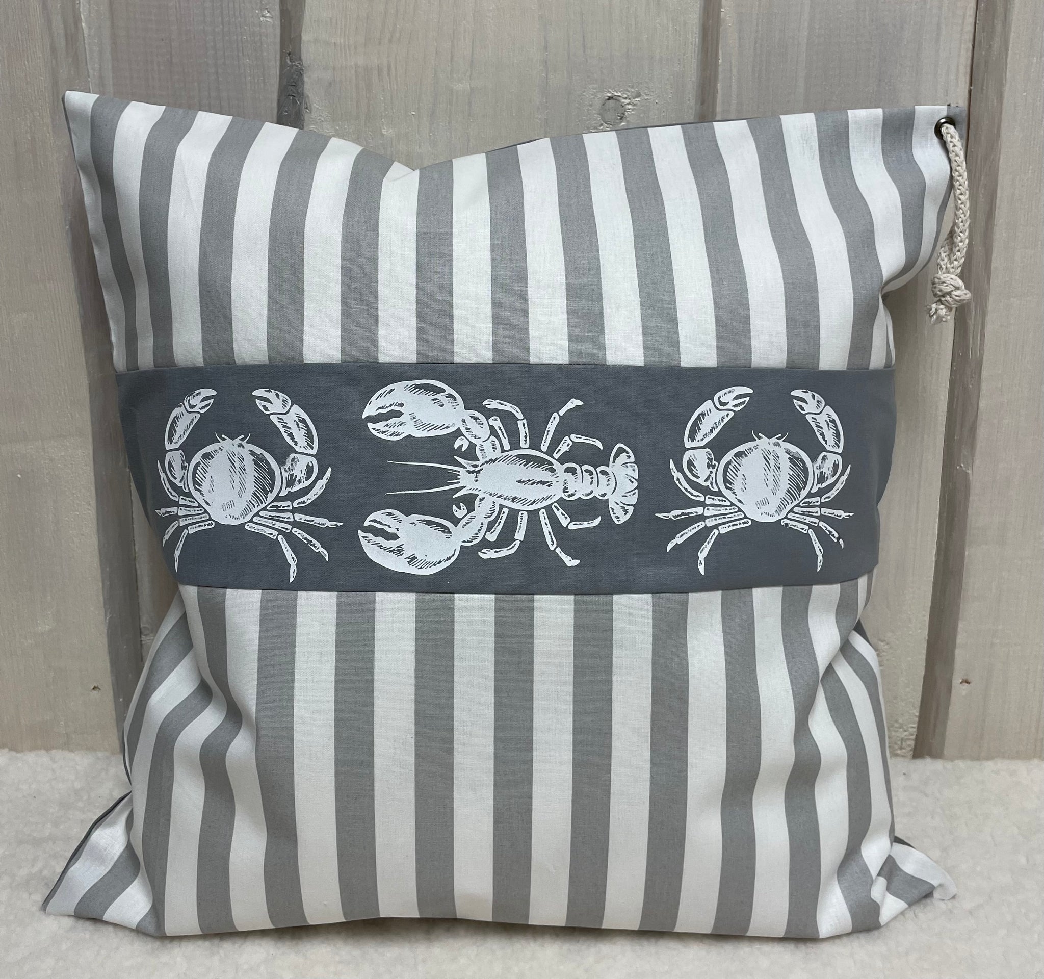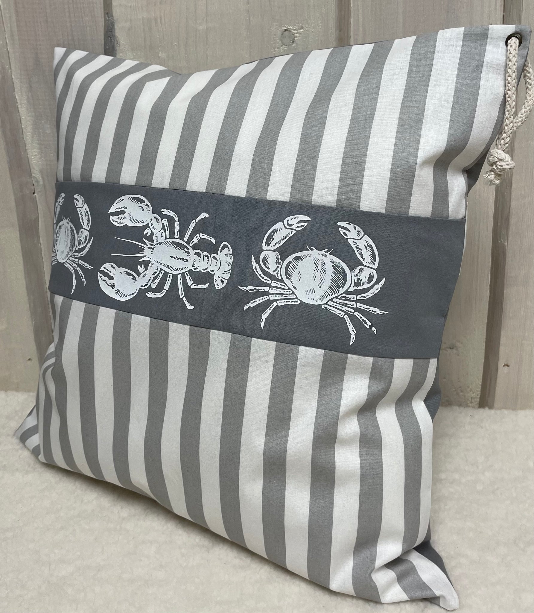 Maritime Kissenhülle, Kissenbezug, Landhausstil Kissen, Dekokissen Krebse grau/weiß