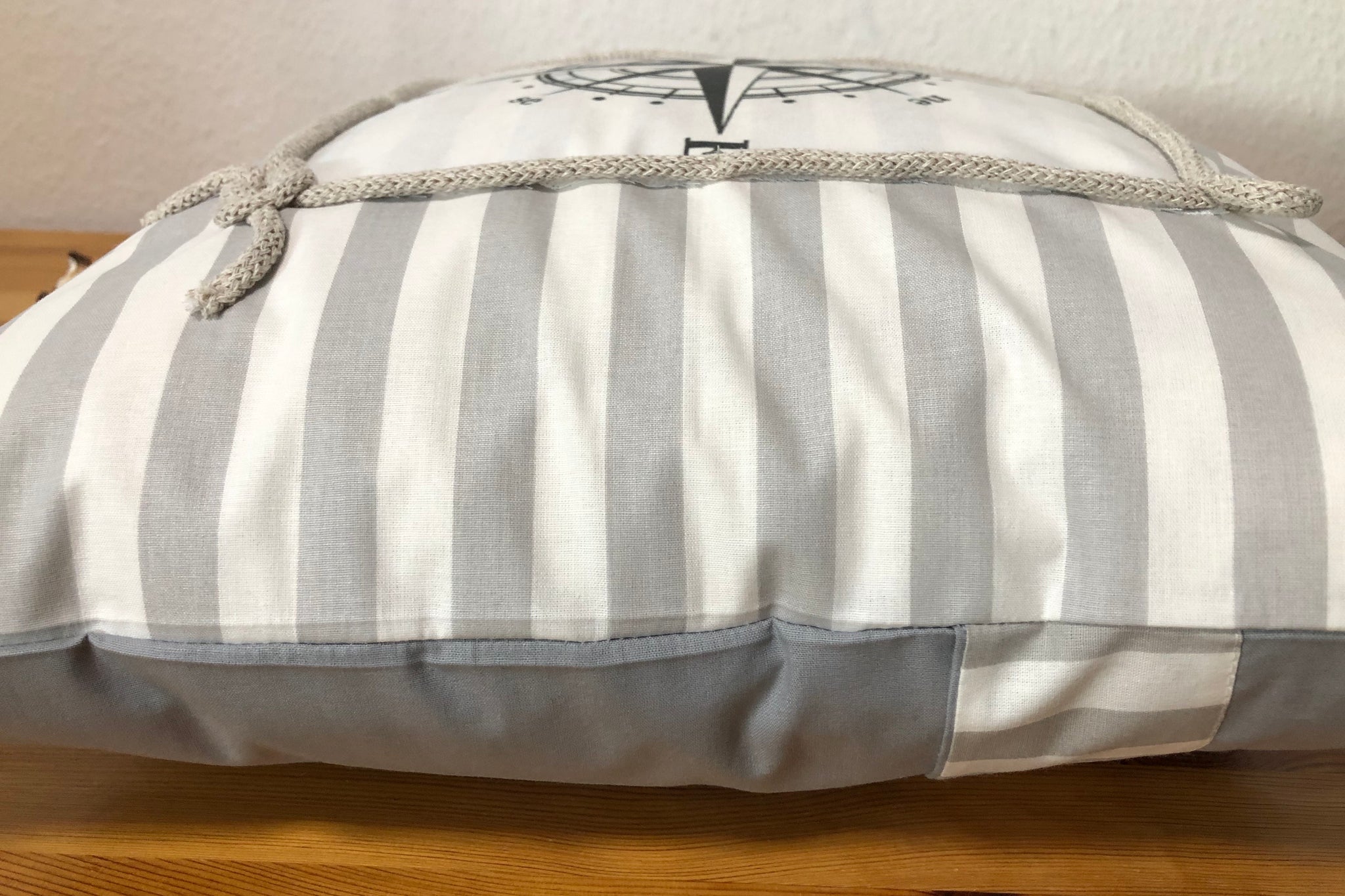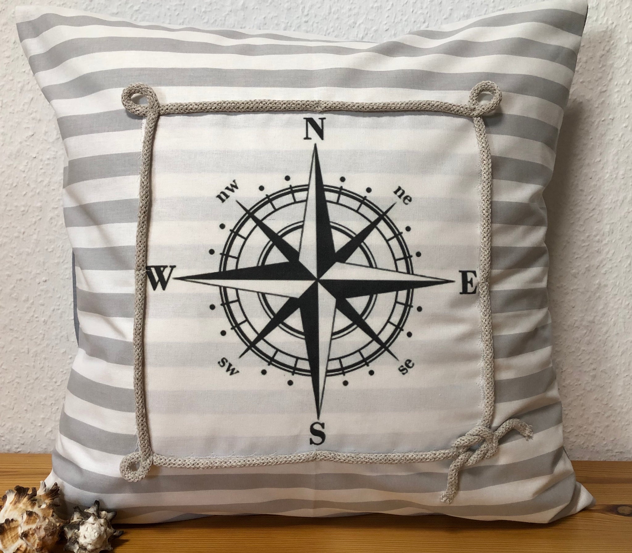 Maritime Kissenhülle, Kissenbezug, Landhausstil Kissen * Kompass * grau/weiß