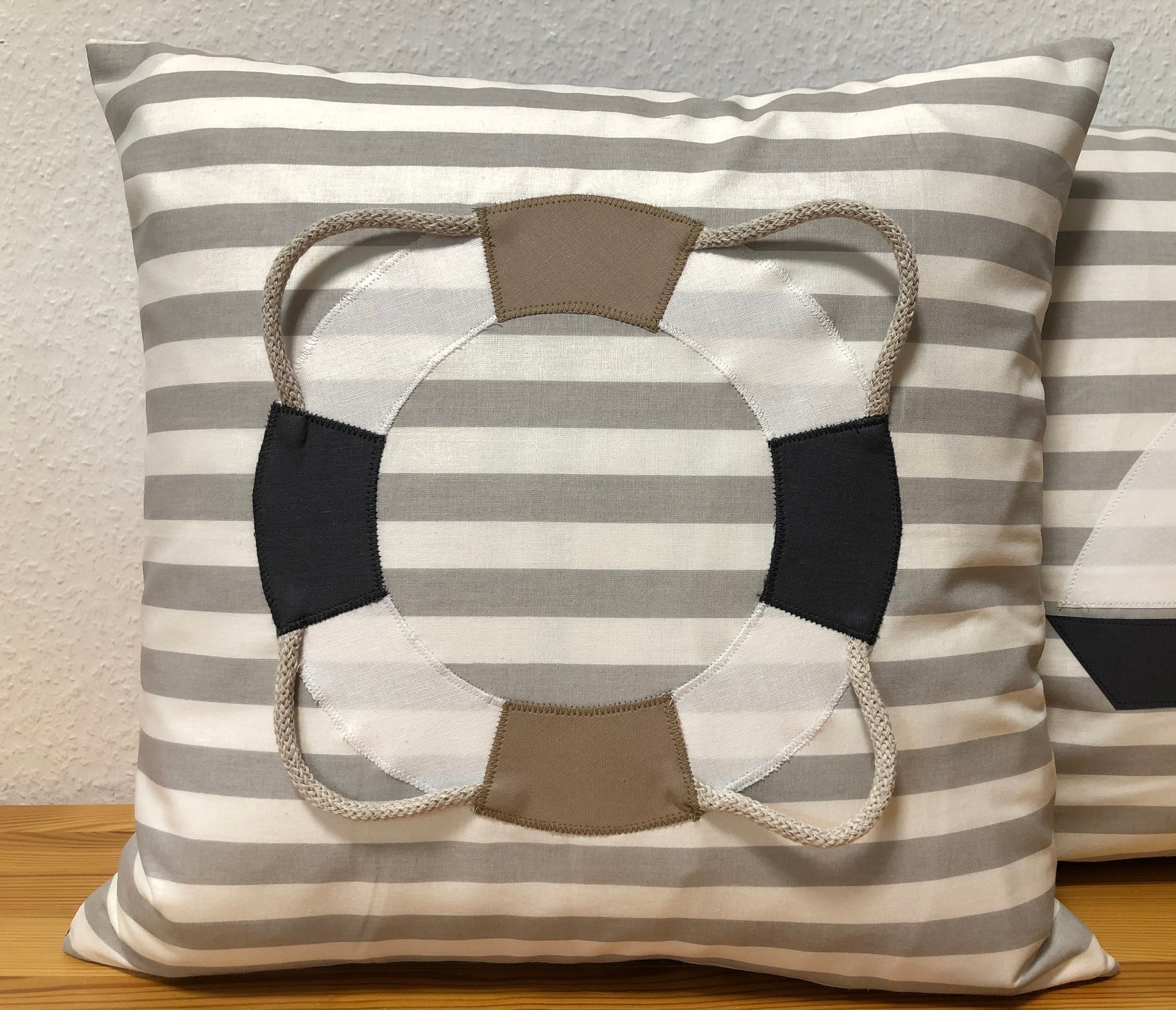 Maritime Kissenhülle, Kissenbezug, Landhausstil Kissen * Rettungsring * grau/weiß/beige