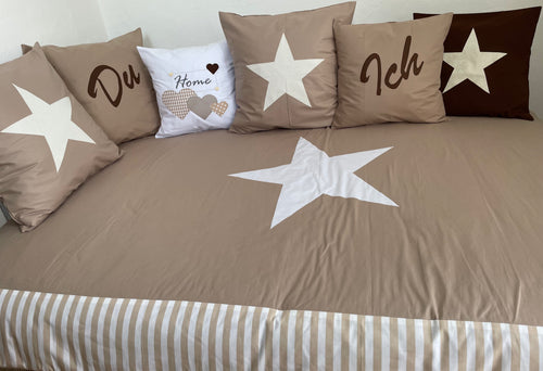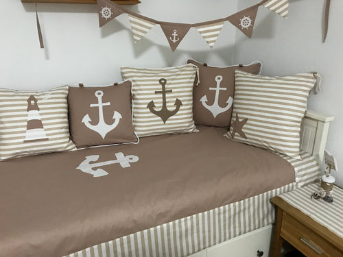 Maritime Patchwork Decke, Tagesdecke, Kinderdecke, Bettüberwurf 130cm x 200cm beige/weiß