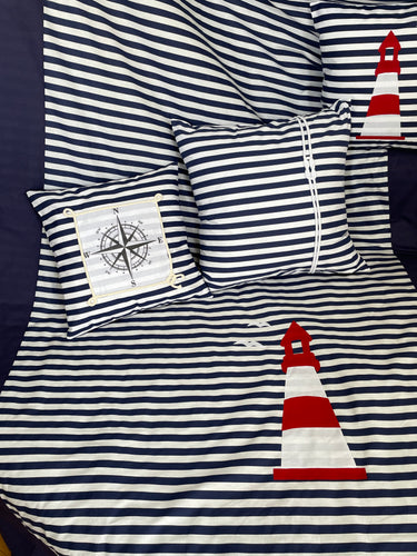 Maritime Patchwork Decke, Tagesdecke, Kinderdecke, Bettüberwurf, blau/weiß 130cm x 200cm