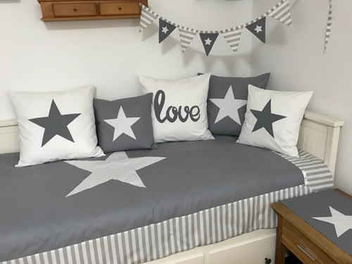 Maritime Patchwork Decke, Tagesdecke, Kinderdecke, Bettüberwurf 130cm x 200cm grau/weiß gestreift