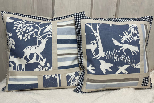 Patchwork Kissenhülle, Landhausstil Kissenbezug, blau / creme 40x40cm.