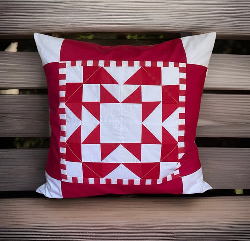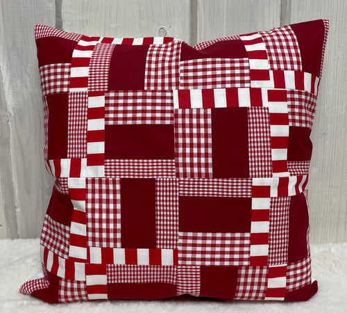 Patchwork Kissenhülle, Landhausstil Kissenbezug, rot/weiß 40x40cm.