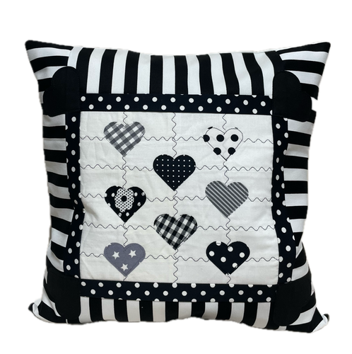 Patchwork Kissenhülle, Landhausstil Kissenbezug, schwarz/weiß 40x40cm.