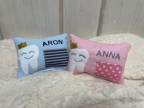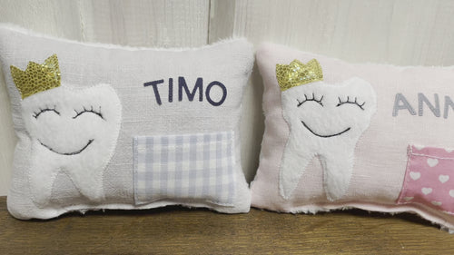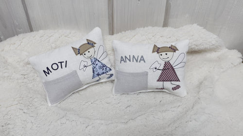Zahnfee Kissen / Personalisiert, Milchzahn Kissen, Zahnkissen, grau oder rosa 12x17cm.