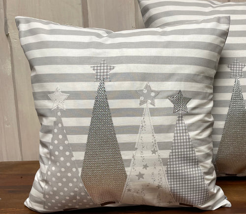 Weihnachtliche Landhausstil Kissenhülle * Kissenbezug * Dekokissen * Weihnachten *grau/weiß gestreift
