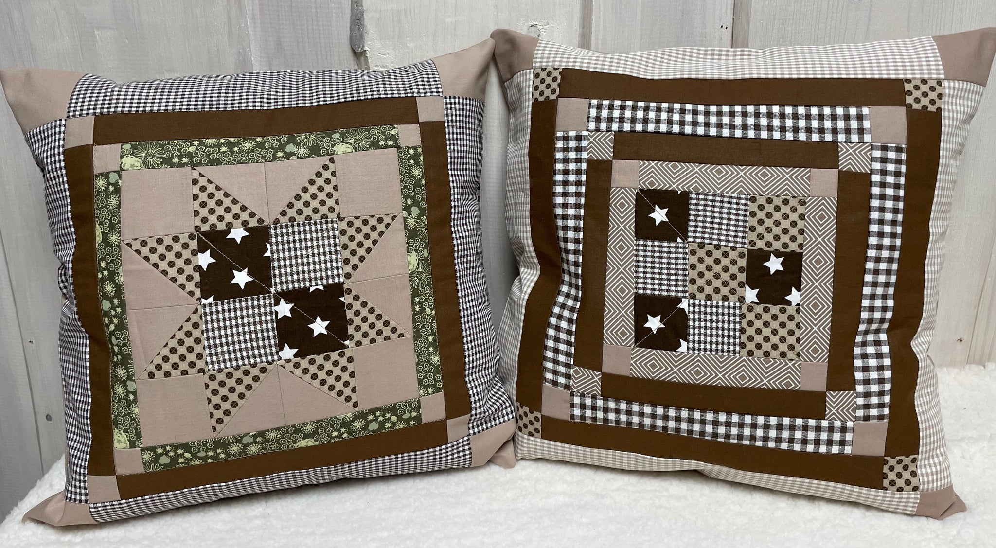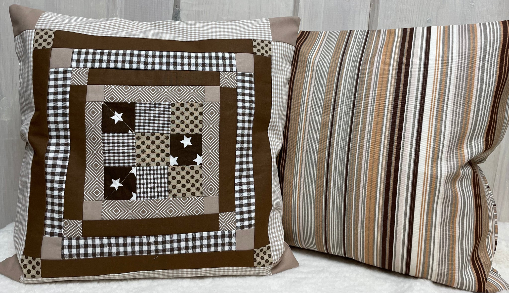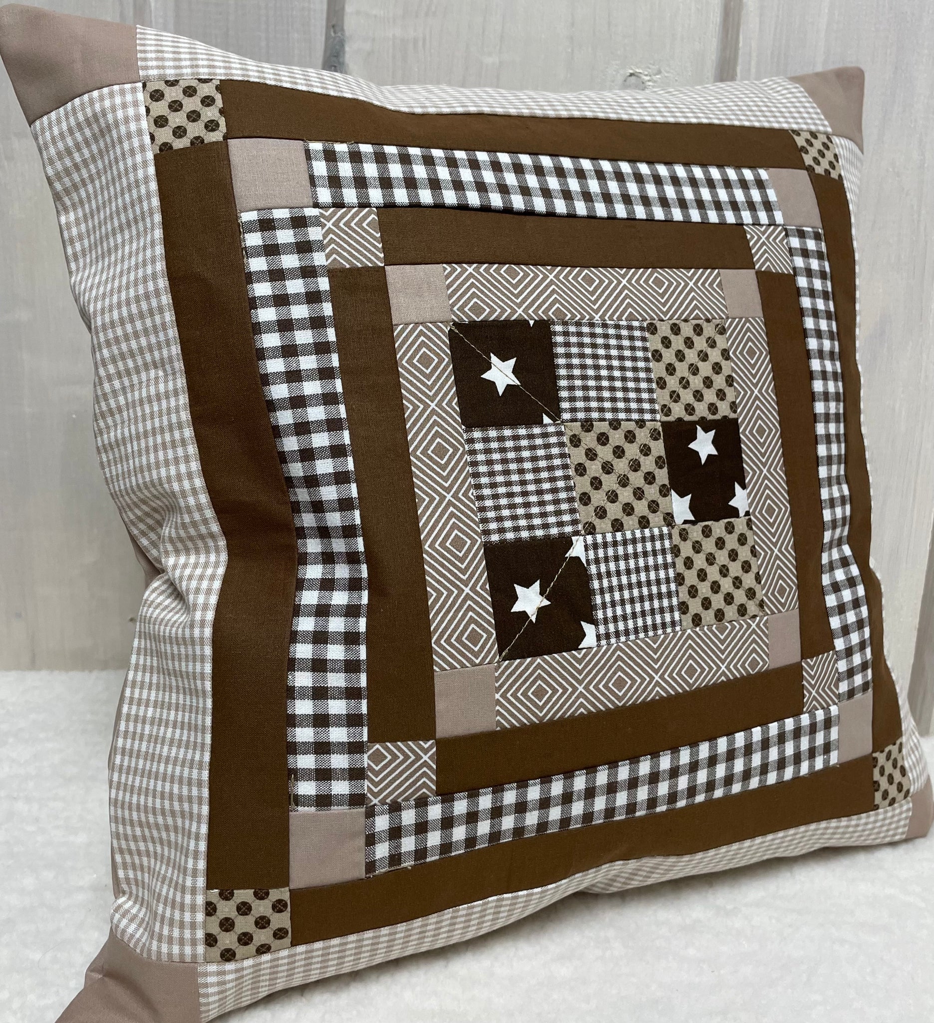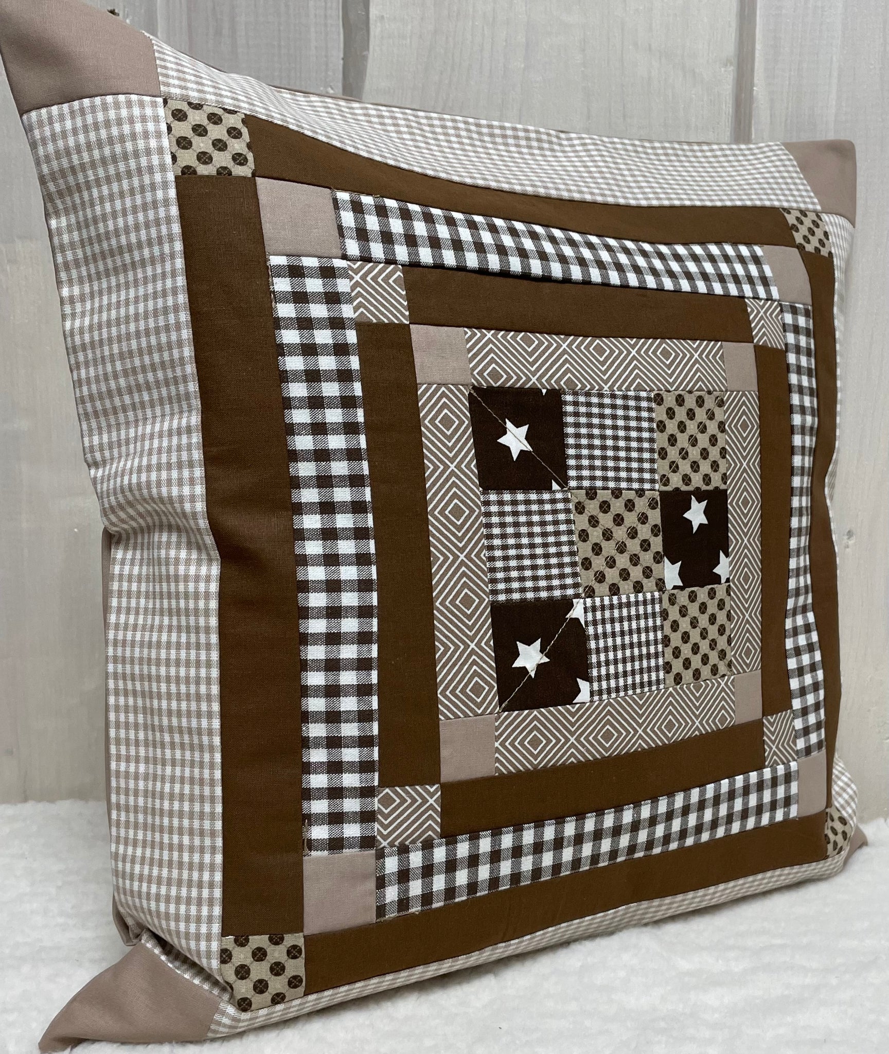 Patchwork Kissenhülle, Landhausstil Kissenbezug, beige /braun 40x40cm.