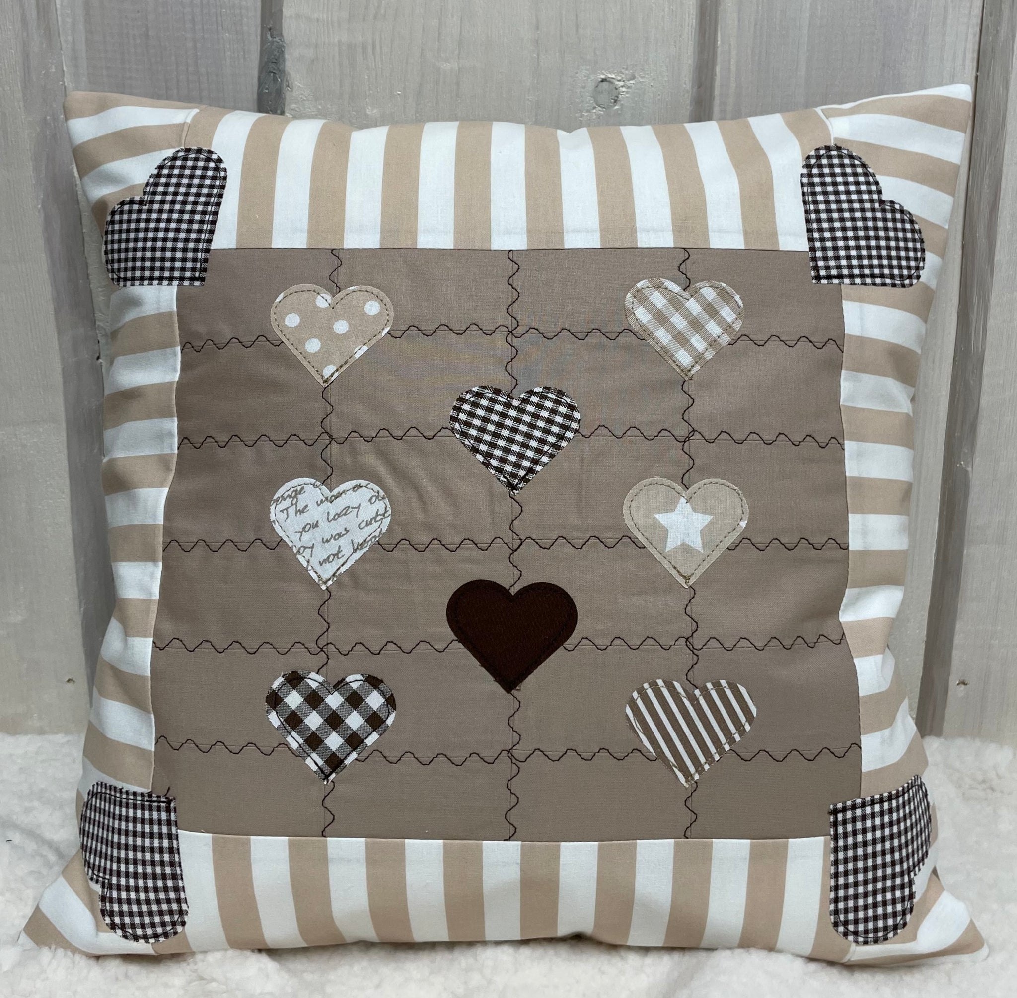 Patchwork Kissenhülle, Landhausstil Kissenbezug, beige /weiß 40x40cm.