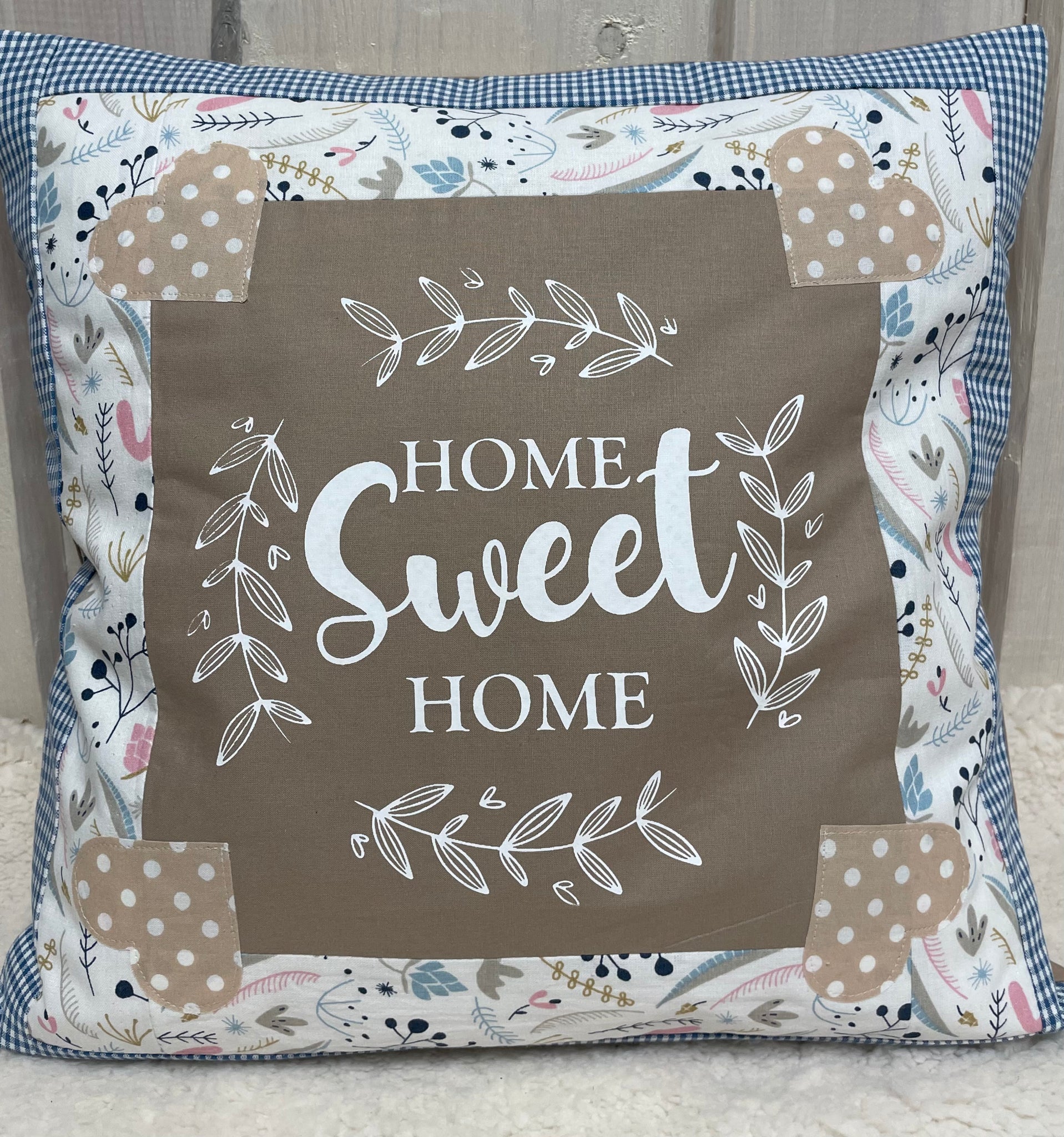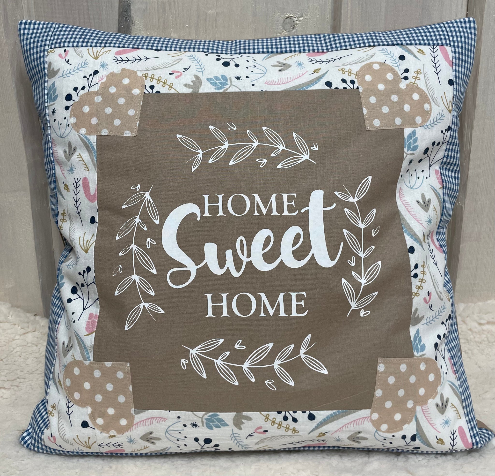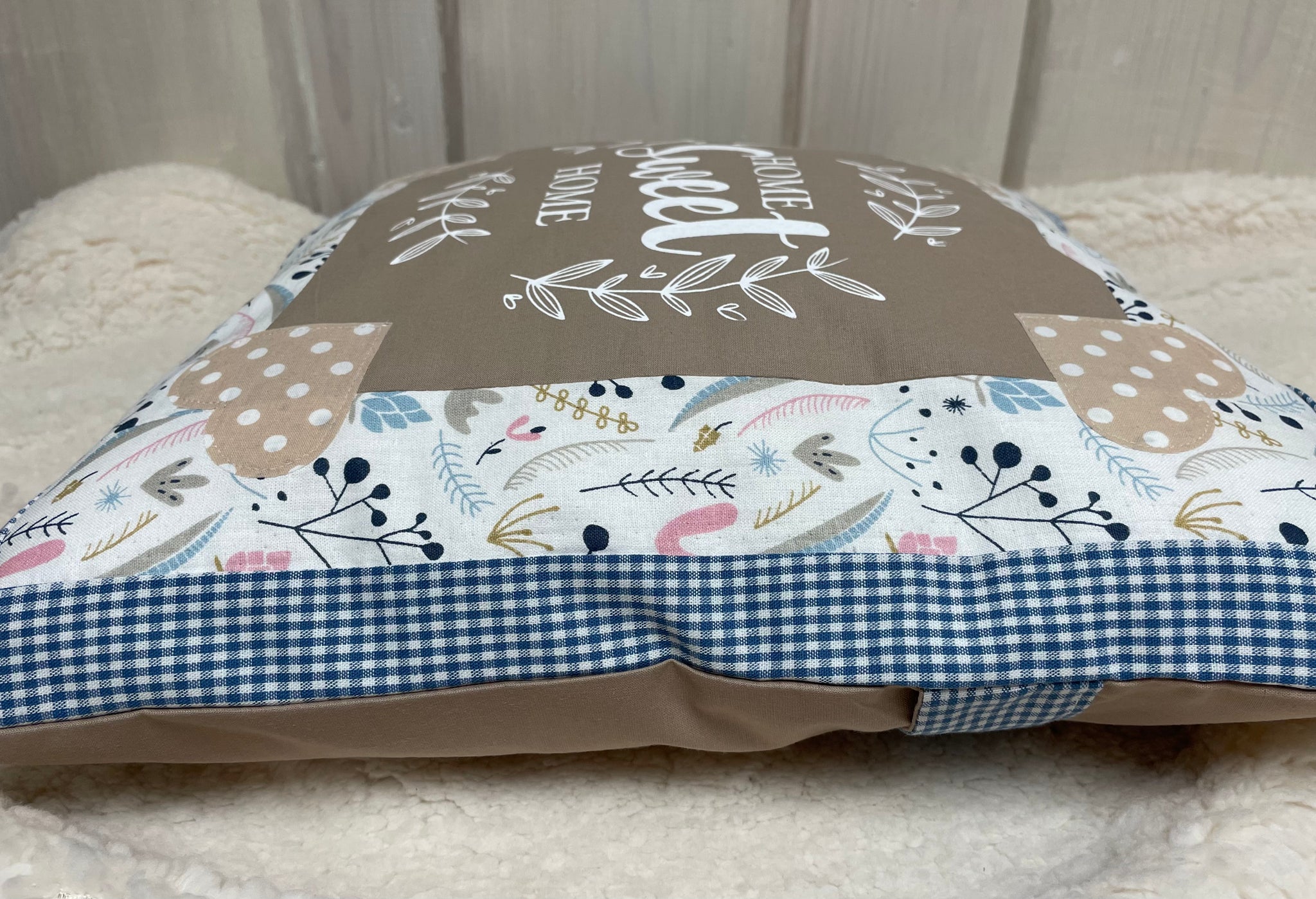Patchwork Kissenhülle, Landhausstil Kissenbezug blau/beige 40x40cm.