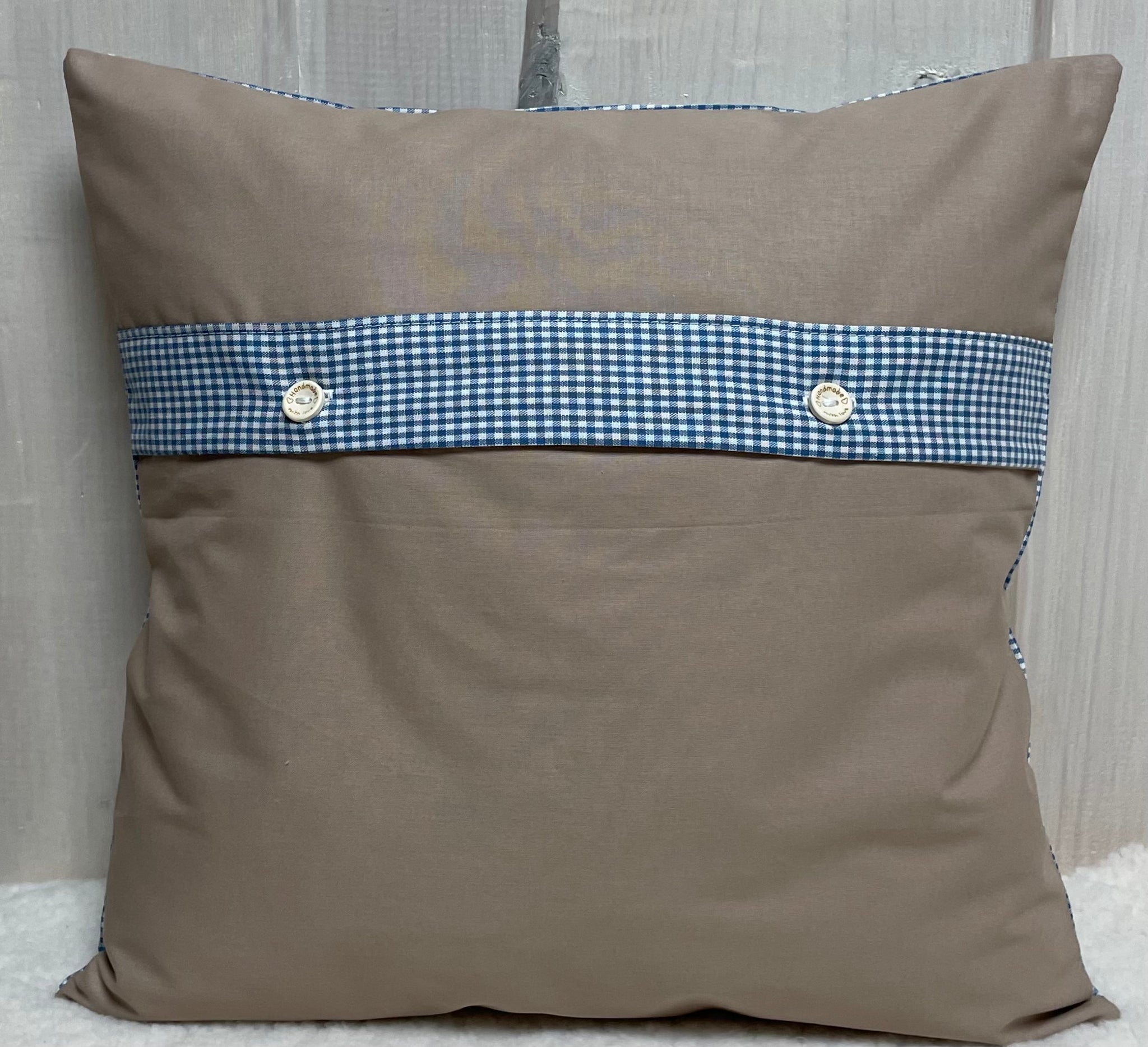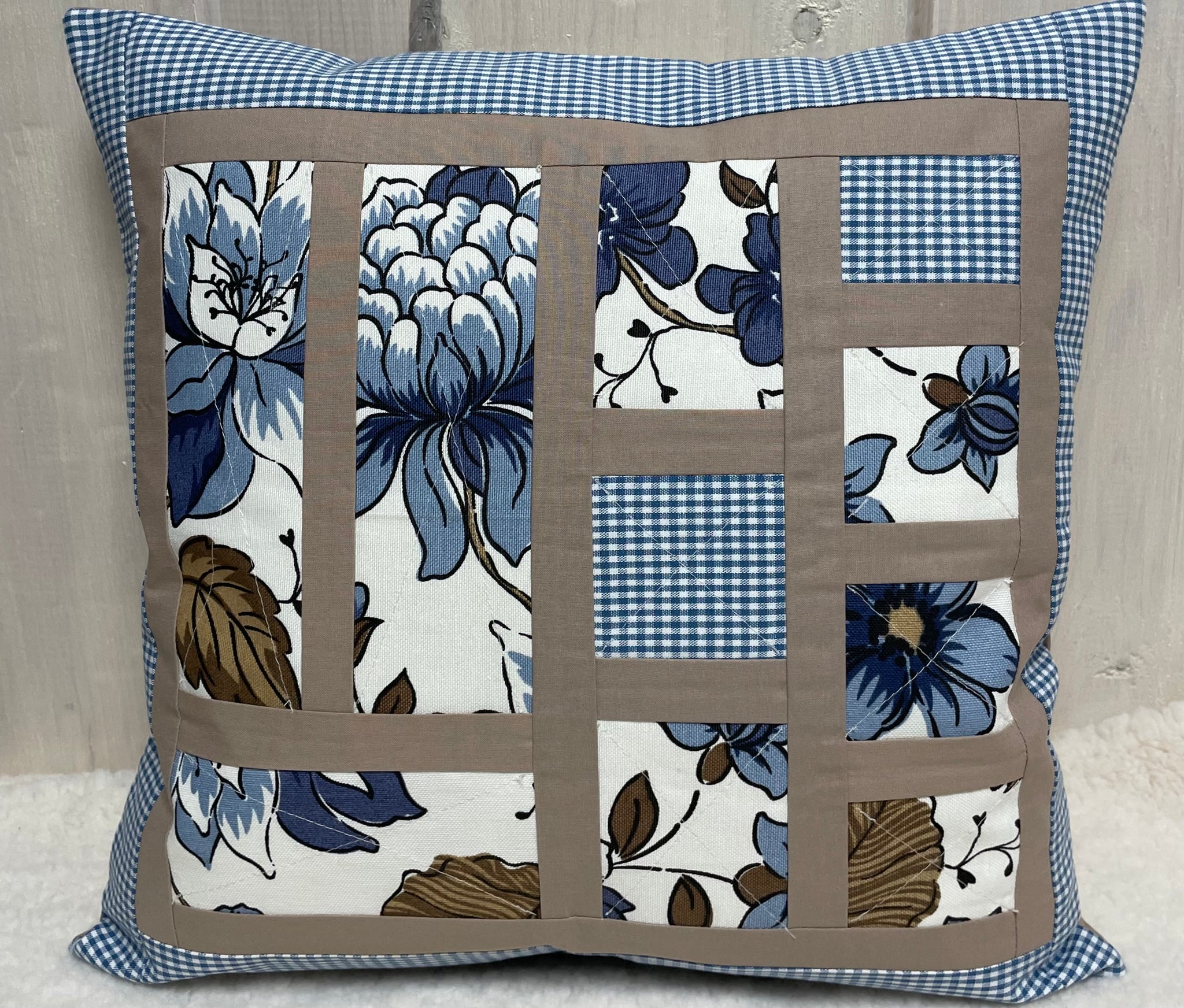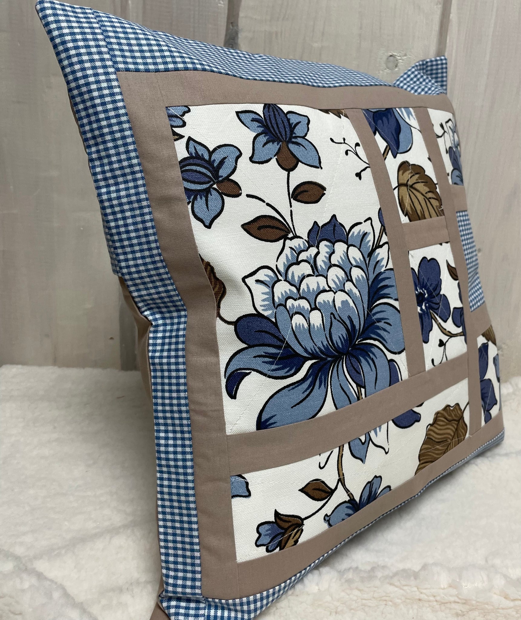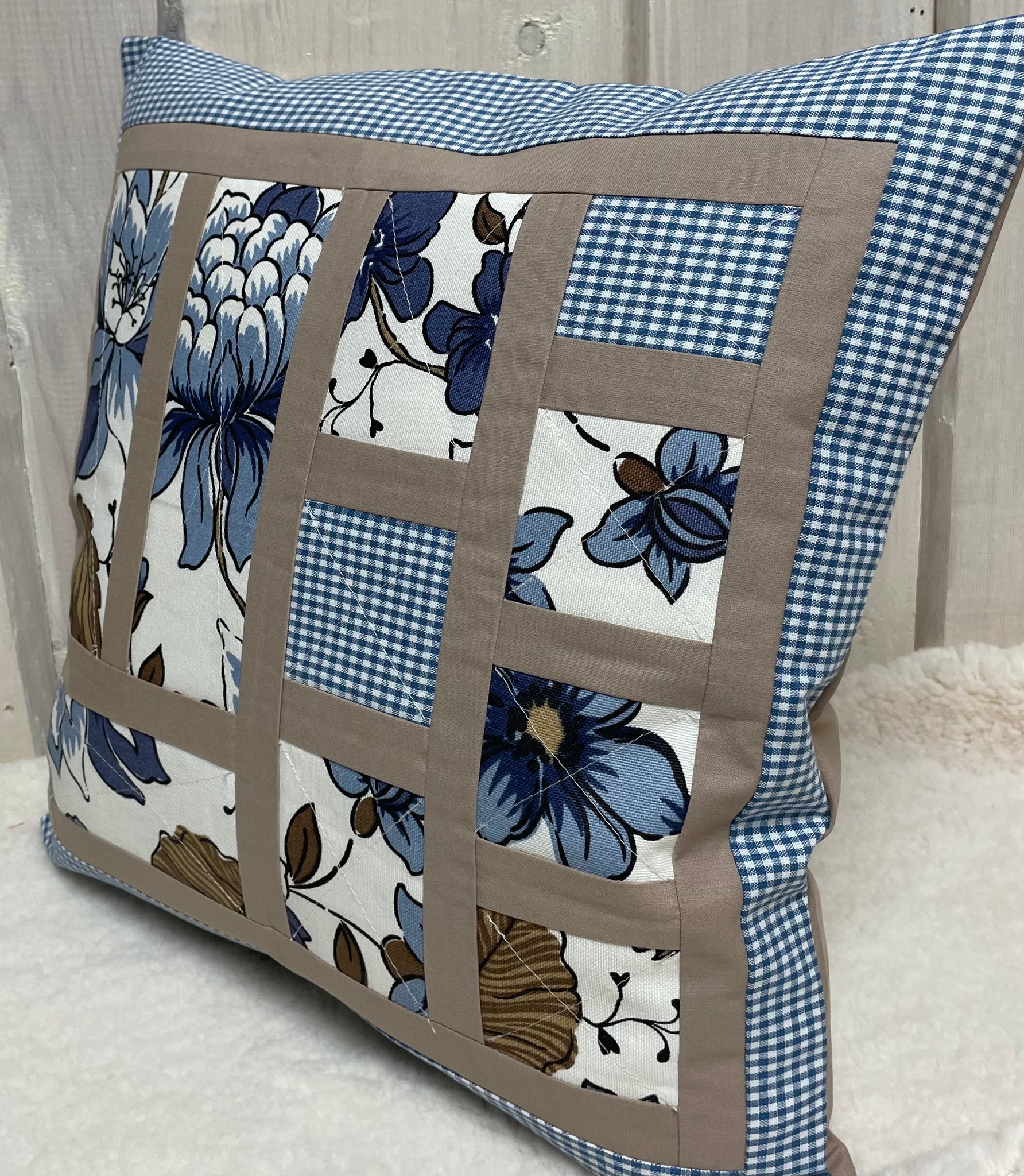 Patchwork Kissenhülle, Landhausstil Kissenbezug, blau / beige 40x40cm.