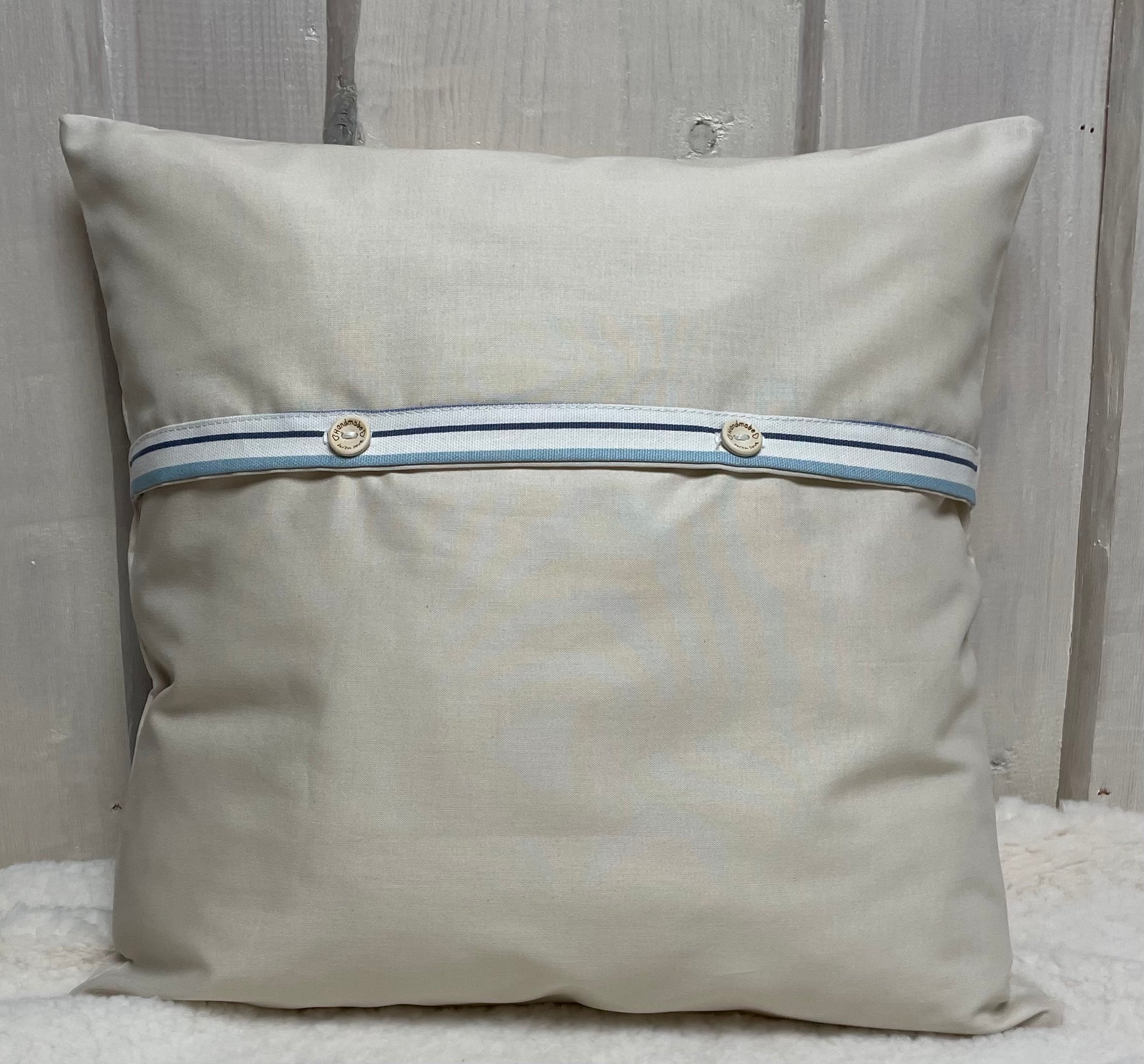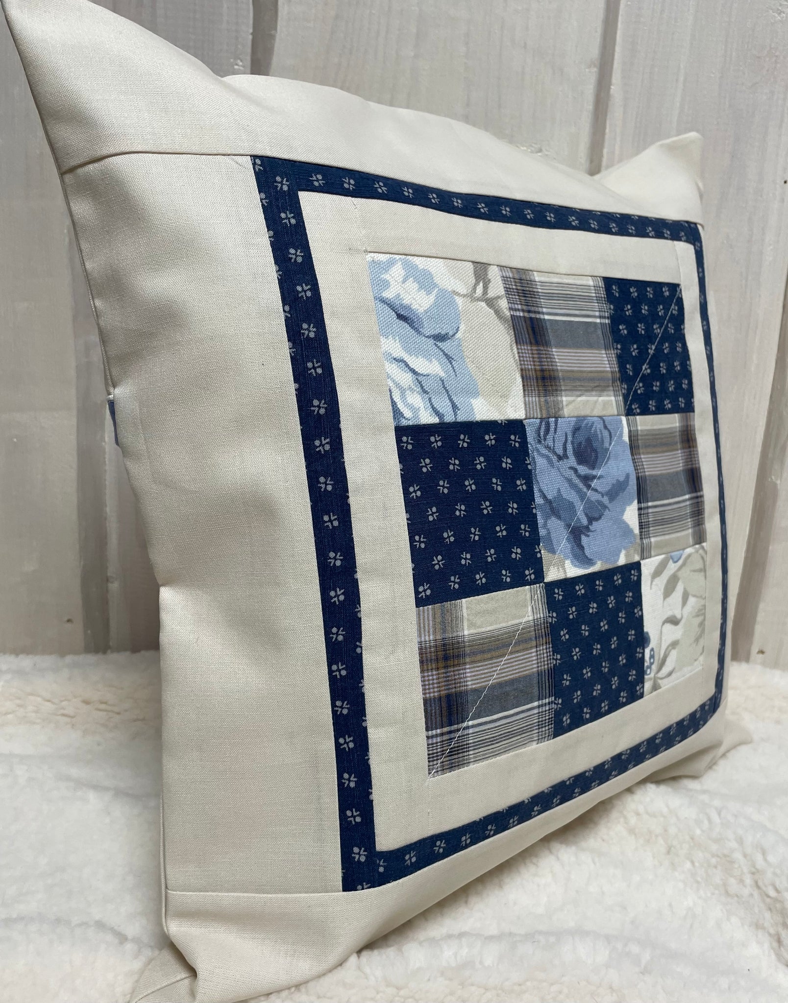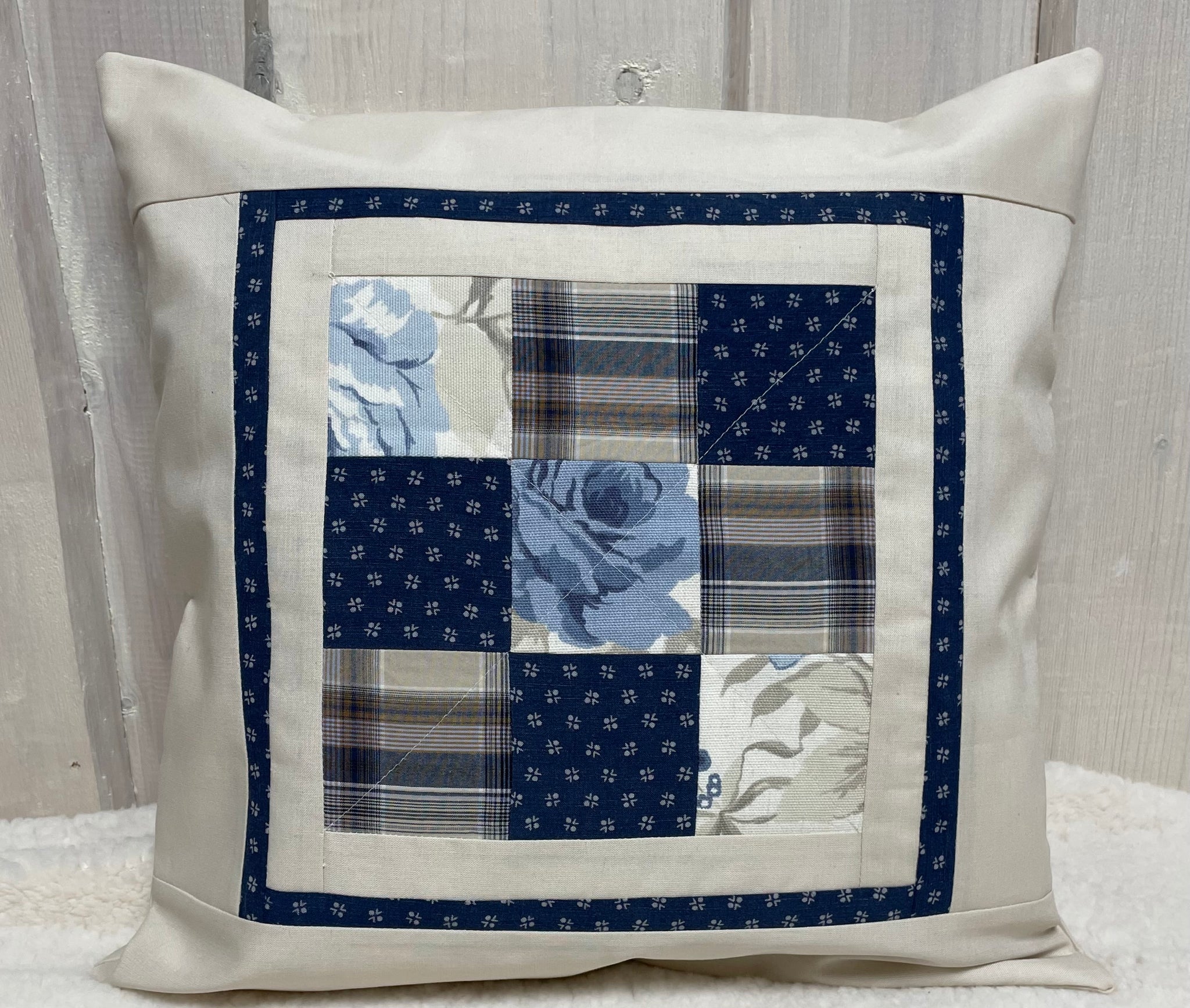 Patchwork Kissenhülle, Landhausstil Kissenbezug, blau / creme 40x40cm.