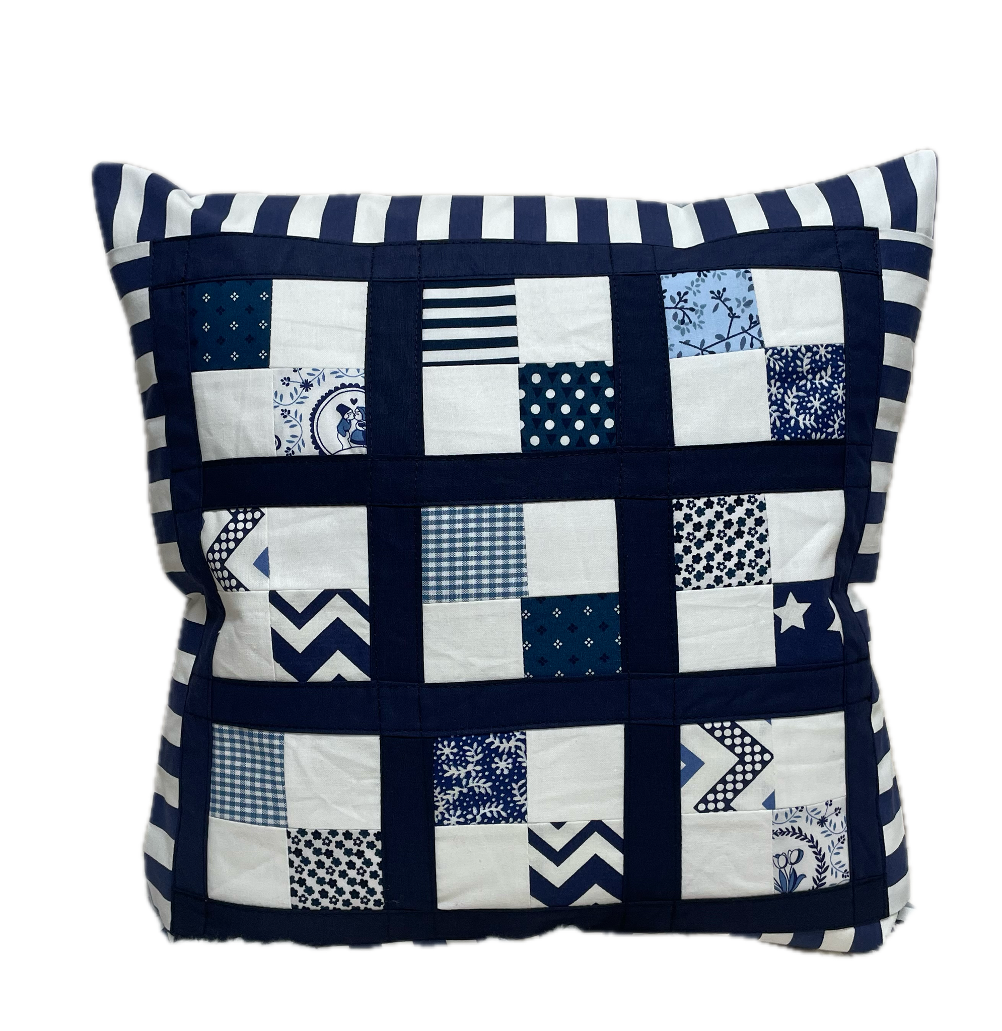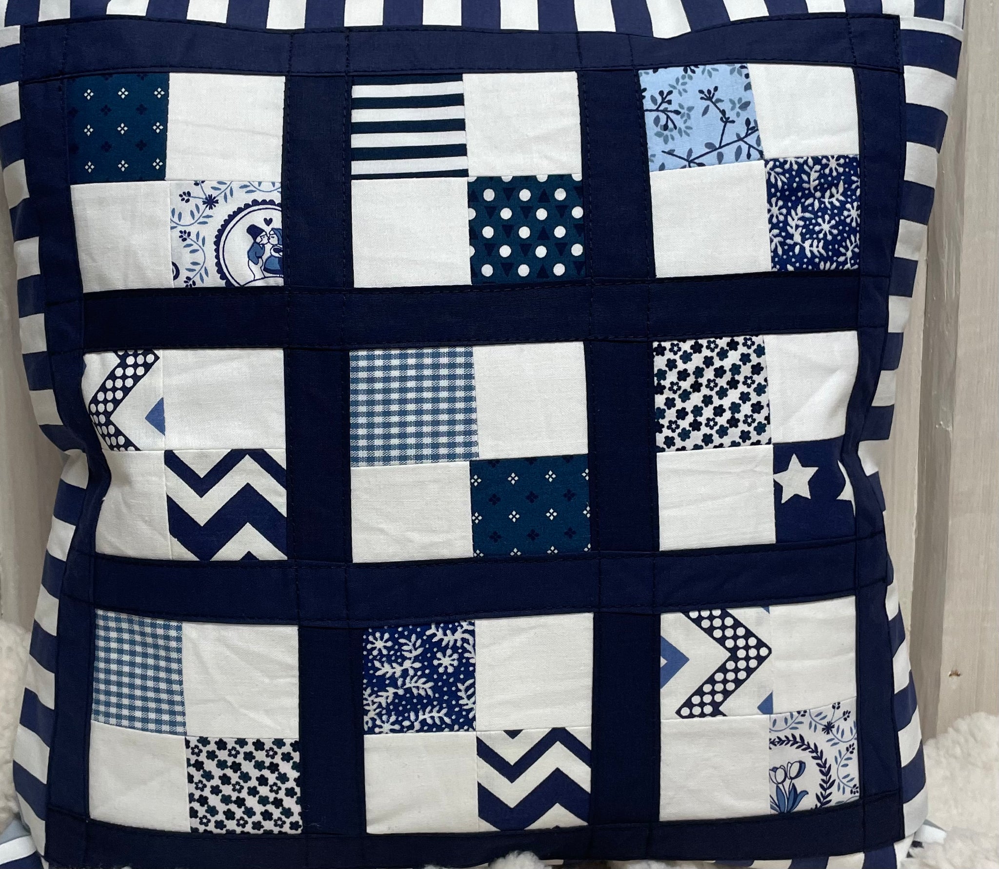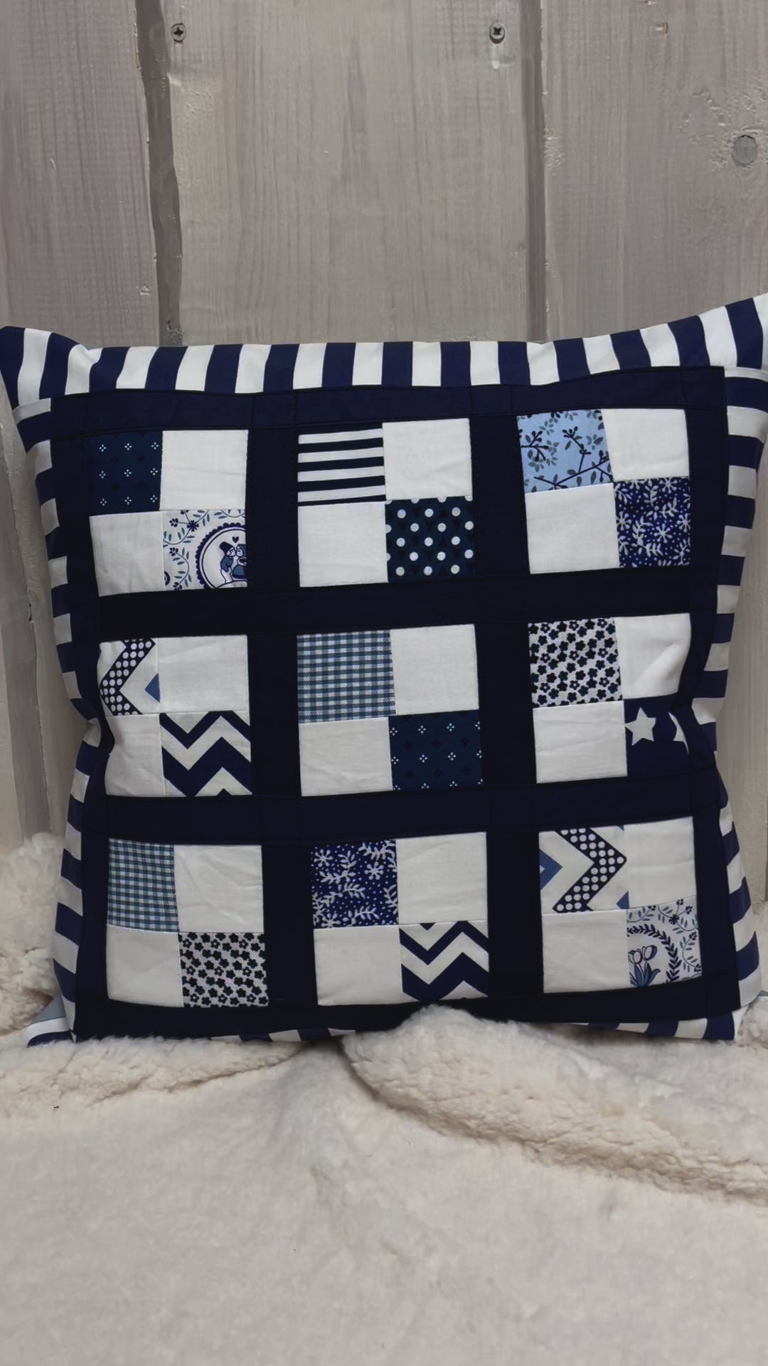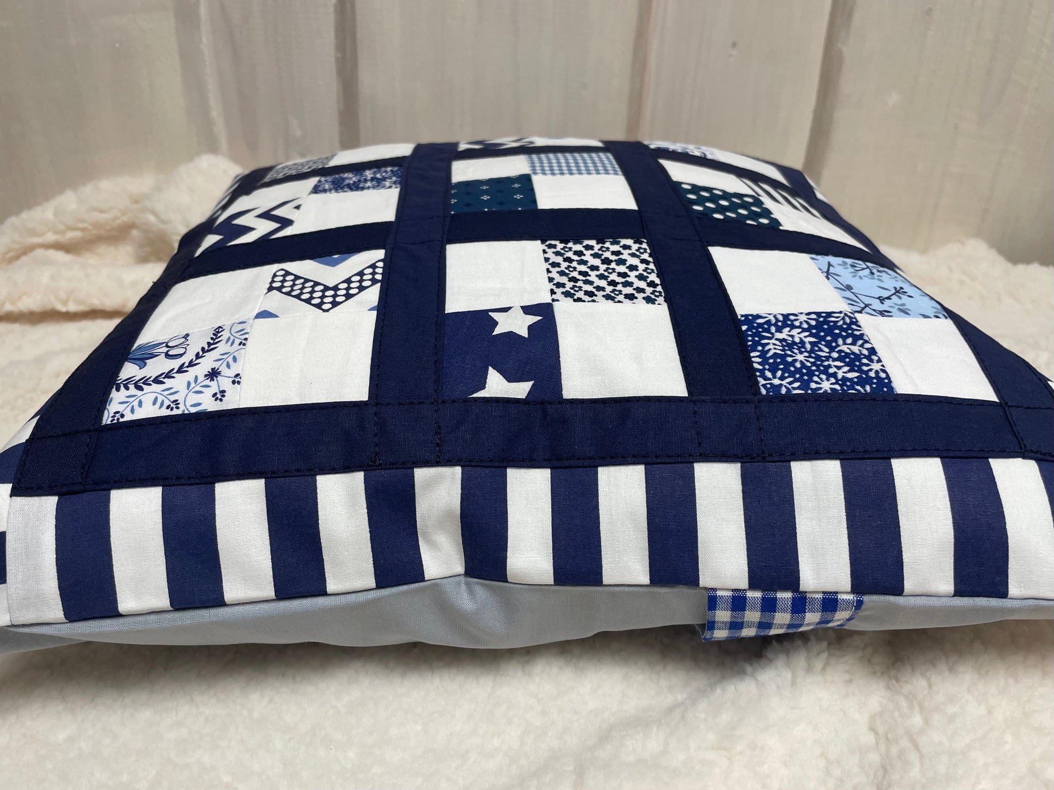 Patchwork Kissenhülle, Landhausstil Kissenbezug, blau/weiß 40x40cm.