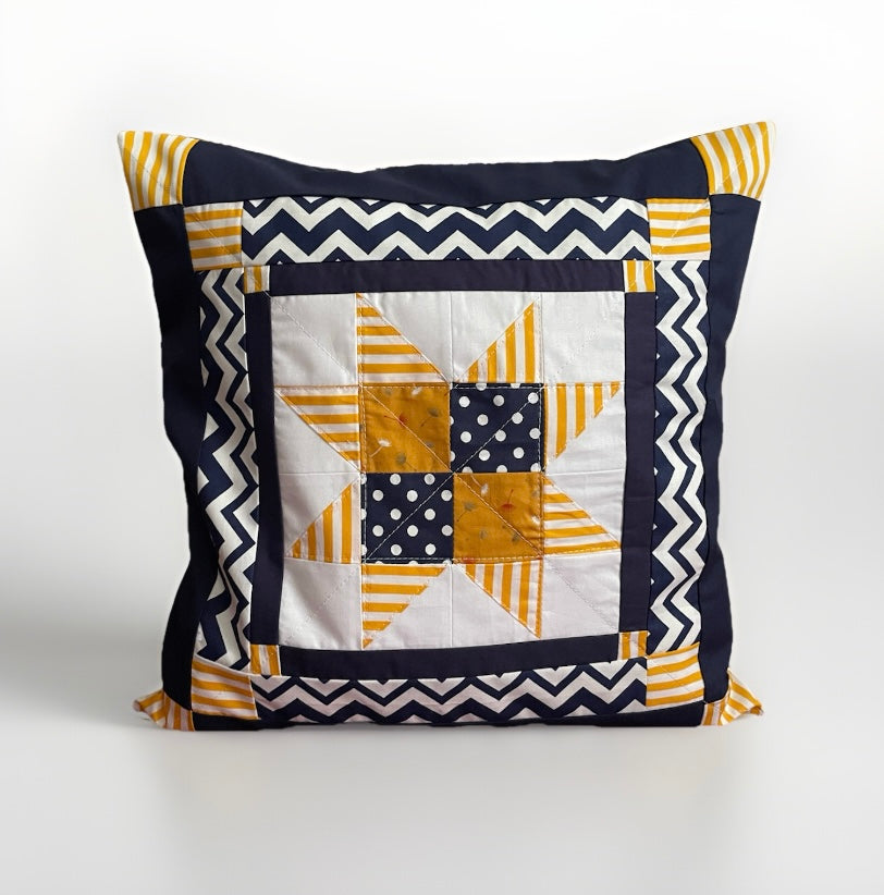 Patchwork Kissenhülle, Landhausstil Kissenbezug, blau/weiß/gelb 40x40cm