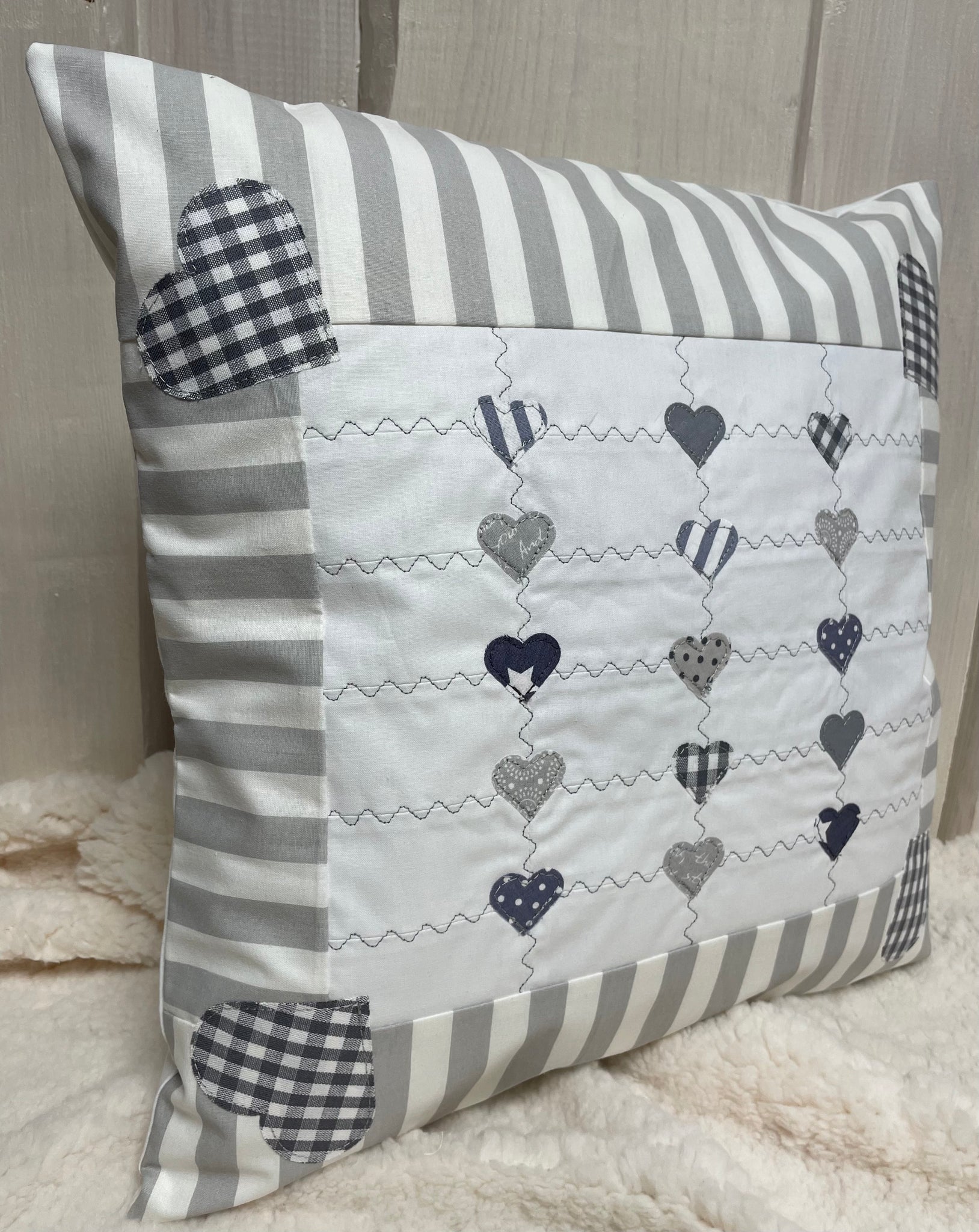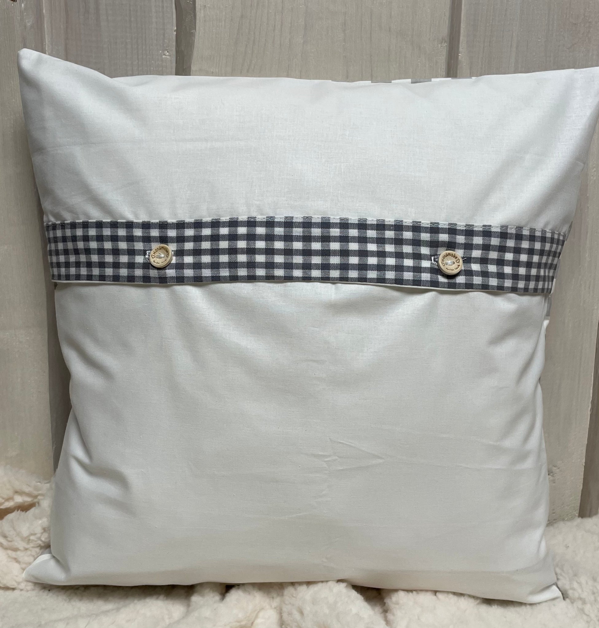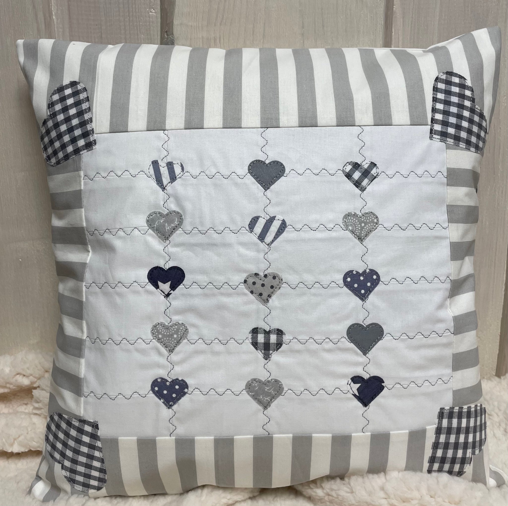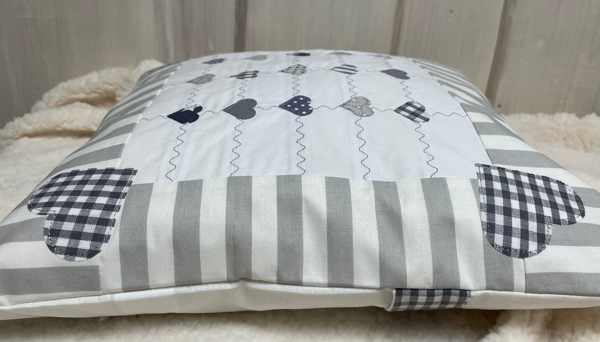 Patchwork Kissenhülle, Landhausstil Kissenbezug, grau /weiß 40x40cm.
