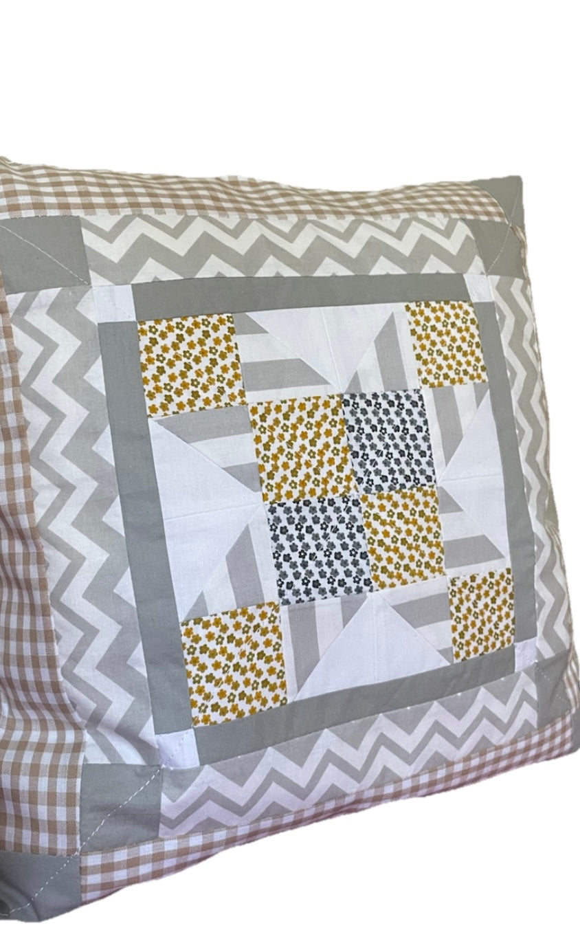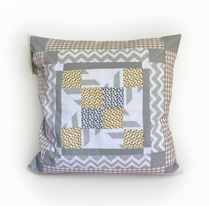 Patchwork Kissenhülle, Landhausstil Kissenbezug, grau/weiß/gelb 40x40cm