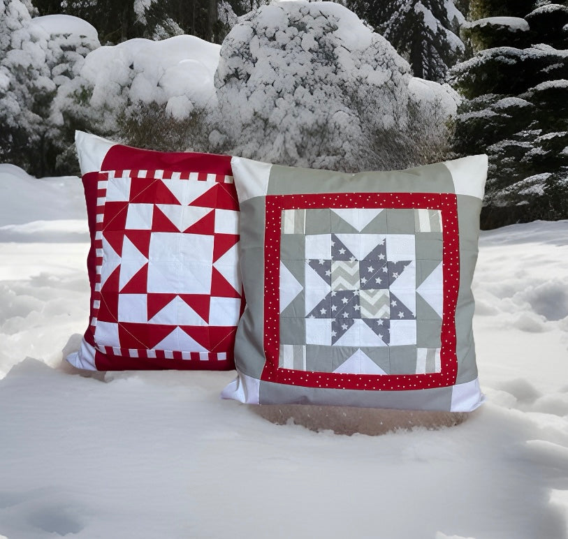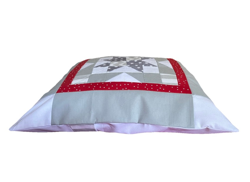 Patchwork Kissenhülle, Landhausstil Kissenbezug, rot/grau/weiß 40x40cm