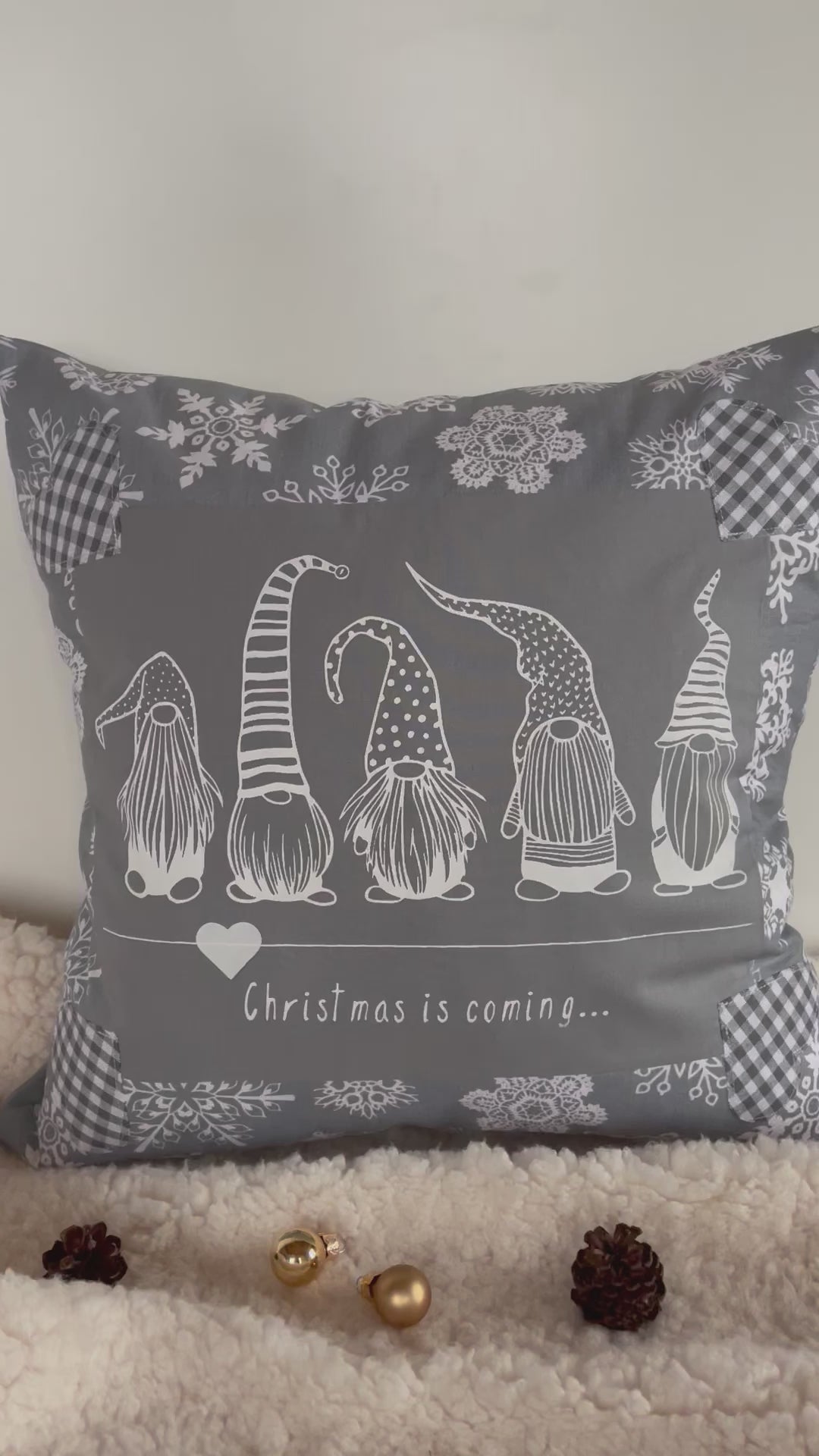 Weihnachtliche Kissenhülle * Landhausstil Kissenbezug * Dekokissen *grau/weiß