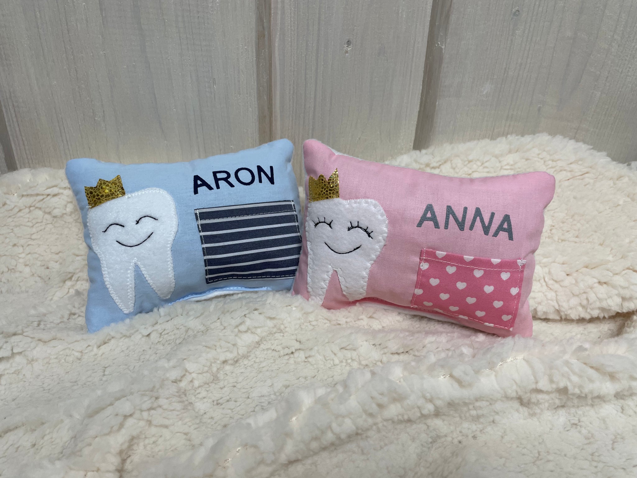 ♥ Liebevoll genähtes Zahnfee Kissen in blau /weiß oder rosa/weiß