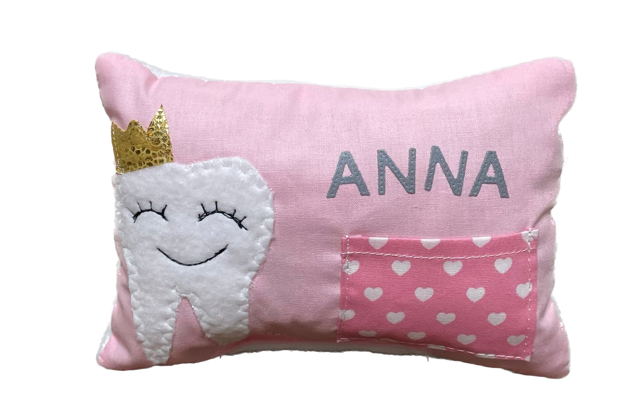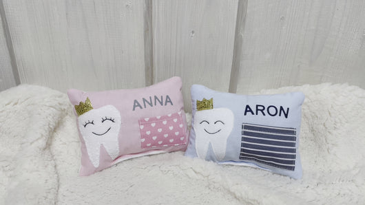 Zahnfee Kissen / Personalisiertes Milchzahn Kissen, Zahnkissen, weiß 12x17cm.